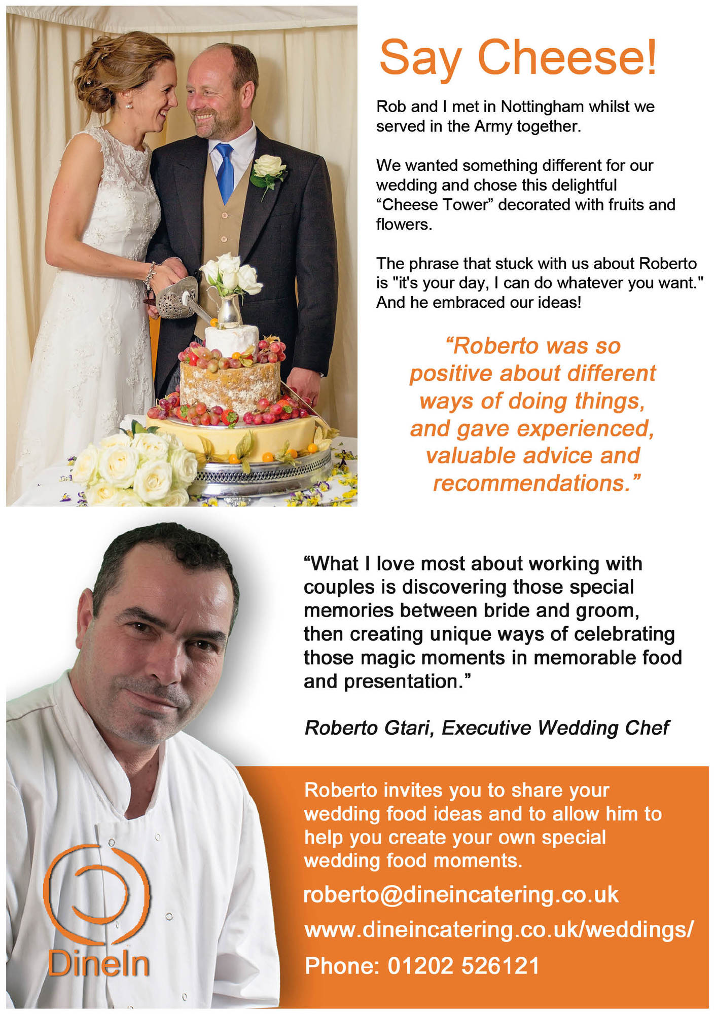 Dine In Catering Limited was founded in 1988 with a view to providing the best outside catering for any type and size of function from private parties to the largest corporate functions and everything in between. With a client base ranging from individuals through local business to multi-national companies and even royalty.