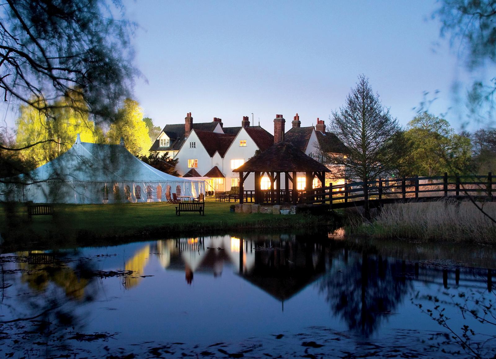 Prested is known for its stunning parkland setting at the end of a tree-lined drive, delicious food, relaxed welcoming atmosphere and its wonderful staff who go that extra mile for every couple. Three of Prested’s handsome reception rooms and the gazebo outside are licensed for civil ceremonies, so you can choose where you want your ceremony, wedding breakfast and evening entertainment. Summer weddings include the use of a traditional marquee on the lawn.