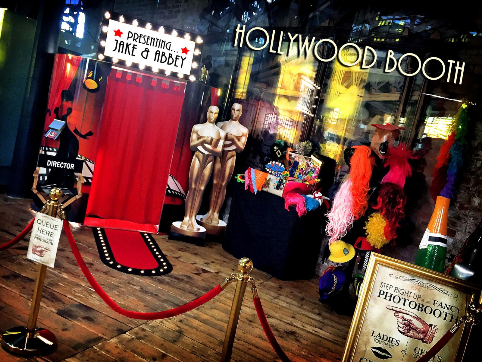 A photo shoot in our studios to create a picture of you to place on every booth print and also on the first page of your guest book, A handmade guest book filled with pictures from the photo booth and written messages from your guests on the night, 2 Uniformed mischievous attendants who interact, dress and have fun with your guests, 3.5 hours use as standard, Talking / Musical photo booths, Various themes including Hollywood & Shabby Chic, Large Marquee Illuminated Sign with your name up in lights, Tons of fab props, Facebook upload and disc of all the nights shenanigans!
