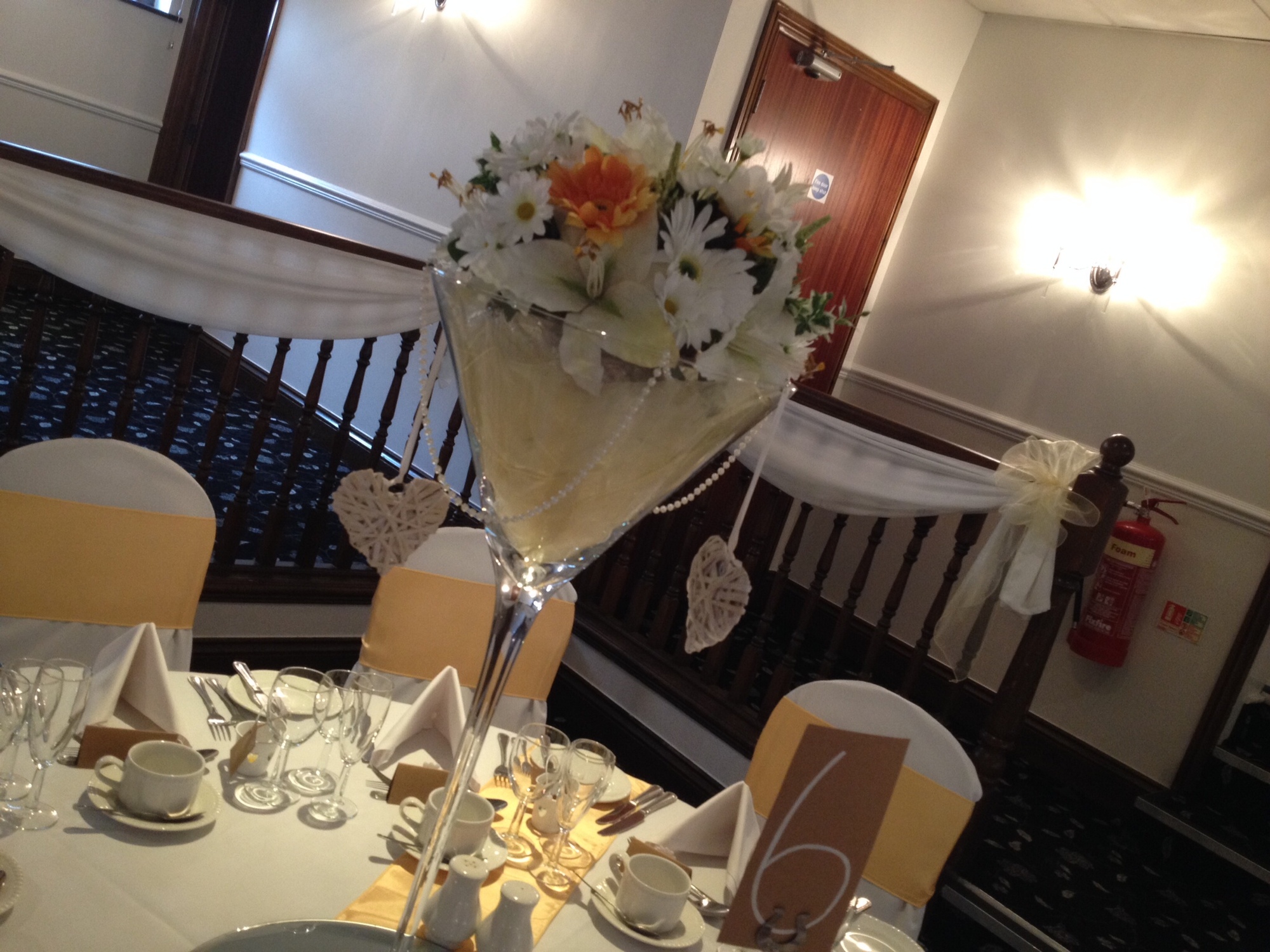 Exquisite centrepiece from fishbowl to giant martini vase and elaborate candelabras lots of ideas and styles to choose from to suit your wedding dream. Please contact me for a FREE no obligation quote.