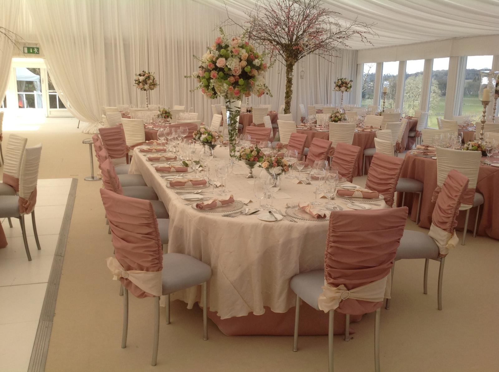 Chair Covers and More can transform your venue with their beautiful chair covers, sashes, drape hoods and wedding linens. All our items are British manufactured and can be custom designed to create new styles. Since merging our business in 2014 we can now offer marquee and banqueting hire. Other products available from us are: Marquees Dance Floors Tables and Chairs Chair Covers and Table Linens Cutlery, Crockery and Glassware Centrepiece Hire Plus so much more