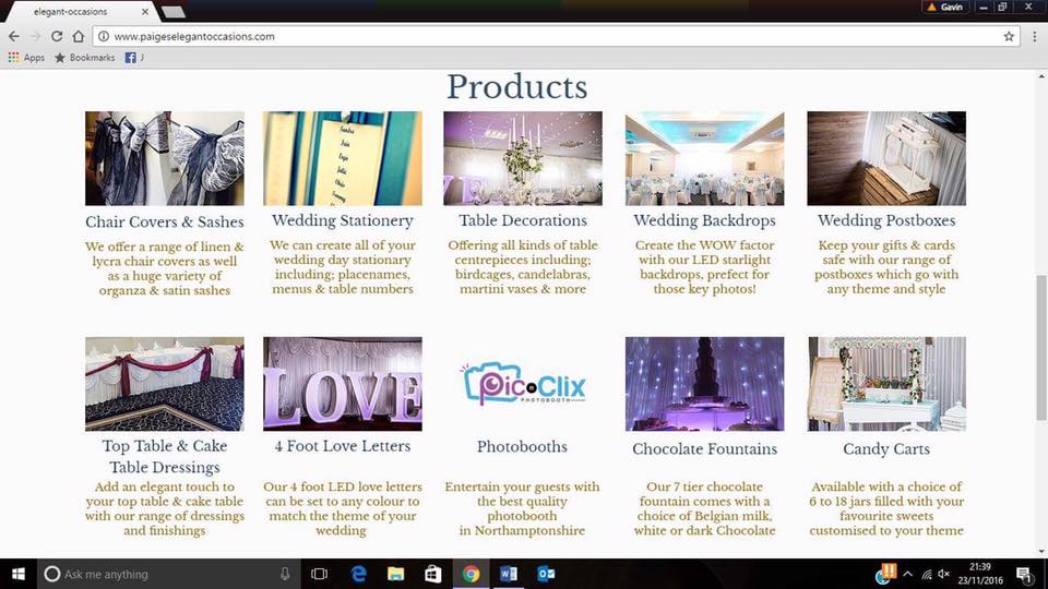 Paige's Elegant Occasions are event and wedding decoration specialists. We offer a complete service providing everything you need to make your special occasion even more special! Such as chair covers and sashes, centrepieces, starlight back drops, and all the wedding day stationery you may need!