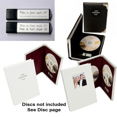 We supply USB and disc presentation cases for the wedding market. Our range starts with a basic disc presentation case up to a USB presentation case. We also do engraved plates for the cases and wedding day gifts.