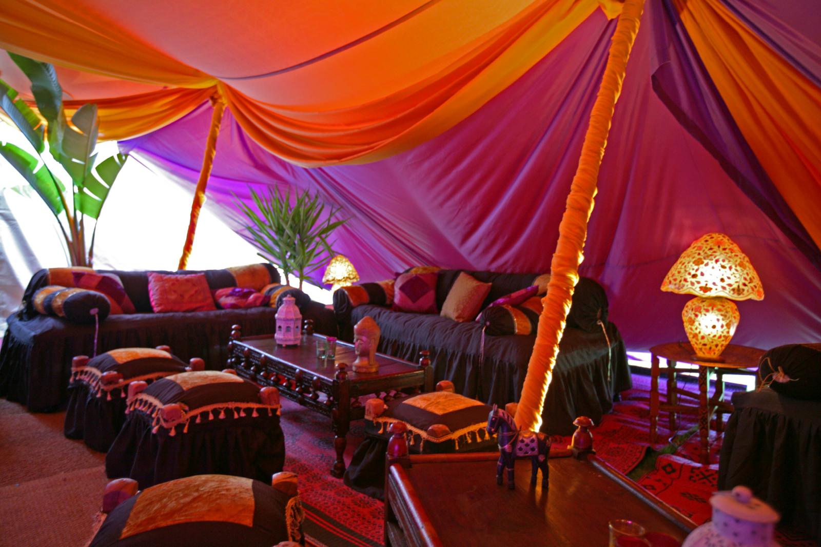 The Complete Chillout Company provides a unique venue decoration service in the UK. We specialize in spectacular transformations of barns, halls and indoor party and wedding venues using our wide range of venue decoration techniques, and can provide your marquee party a true ‘wow’ factor with our diverse range of themed marquee linings and marquee decorations. Whatever the event, theme or atmosphere, we can design your magical party venue with venue decorations, drapes, unique handmade décor, event furniture and stunning accessories. In addition to a panoramic range of silks, voiles and organzas we also work with bespoke fabrics which are printed and designed by ourselves to add exclusive accents, hints of pattern, texture and colour to your event. Whether it's a unique wedding, a Christmas party, a private party or a corporate event, The Complete Chillout Company can ensure to transform your venue the way you want! Combining stunning drapes with our original event furnitur