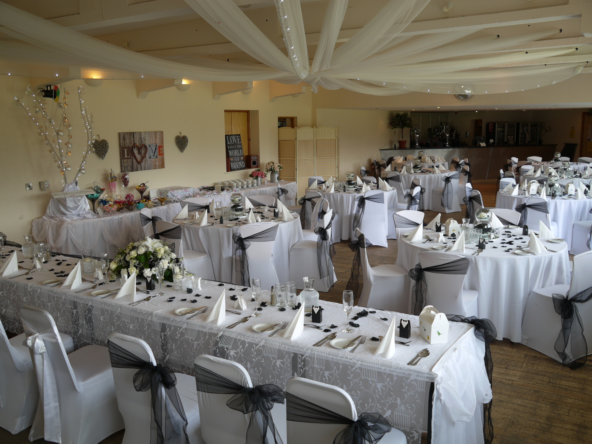 Weddings by Alleycats @ Birkenhead Park Rugby, Wirral. Twilight wedding packages from £1915.00 - 50 daytime reception for hot nibbles with bucks fizz on arrival and 100 evening reception with hot fork and finger buffet. (only available after 4pm) All day wedding reception with 3 course meal for 40 daytime reception and 80 evening reception with hot and cold finger buffet @ £2349.00 All of the above include a bucks fizz reception drink, a bottle of prosecco for the top table, red carpet, flowered wedding arch, full room dressing, seat covers and coloured sash, choice of table centre pieces, vintage birdcage or wishing well for your cards and messages, silver cake knife and cake slice. Personal wedding organiser and master of ceremonies.
