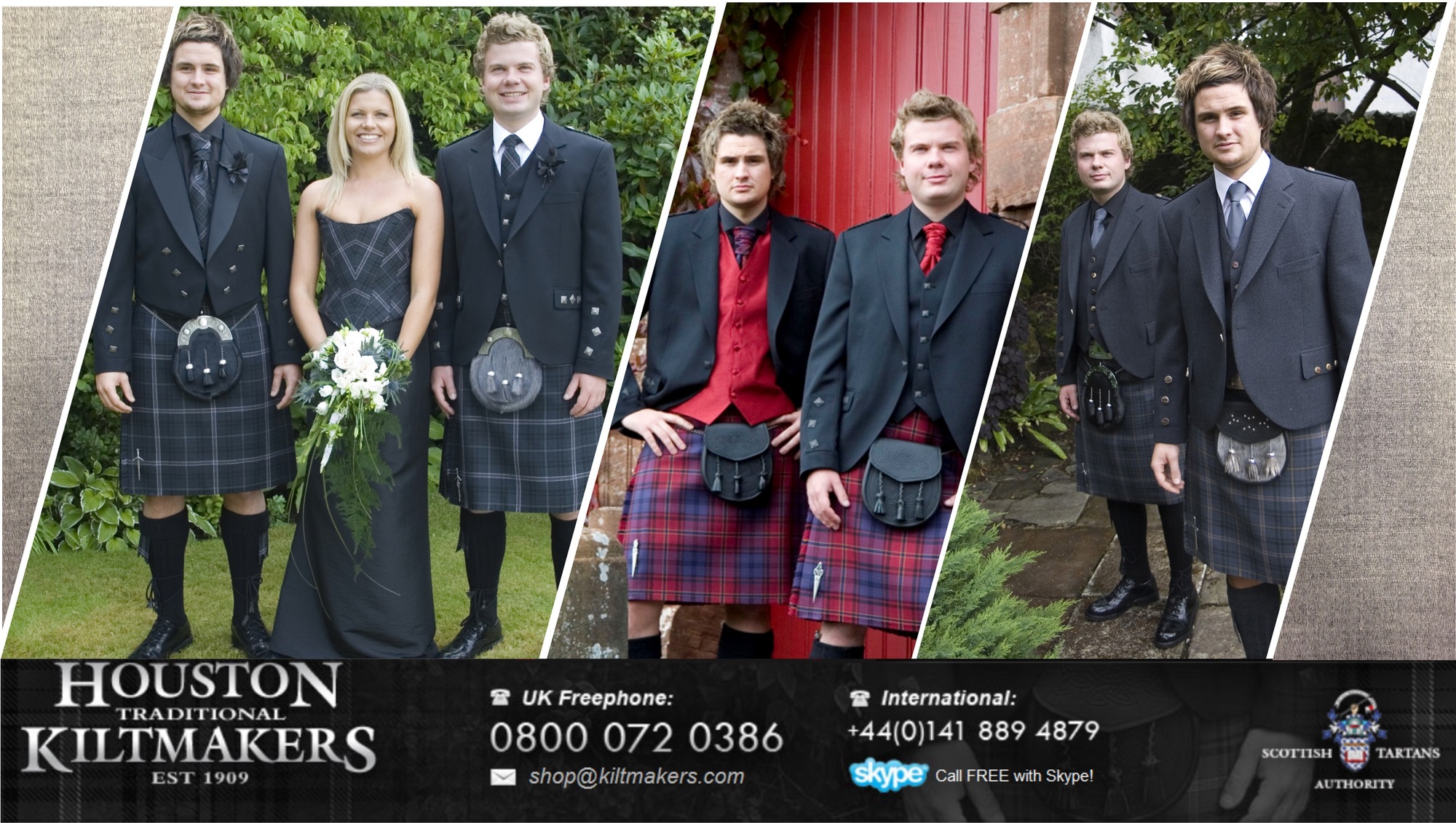 Houston Kiltmakers are a fourth generation family run business with over 100 years experience as gentlemans outfitters, Highlandwear & Tartan Specialists. We do a massive range of tartans, having the capability of producing or designing any tartan to buy. We also offer the largest range of Kilt Hire in Scotland.