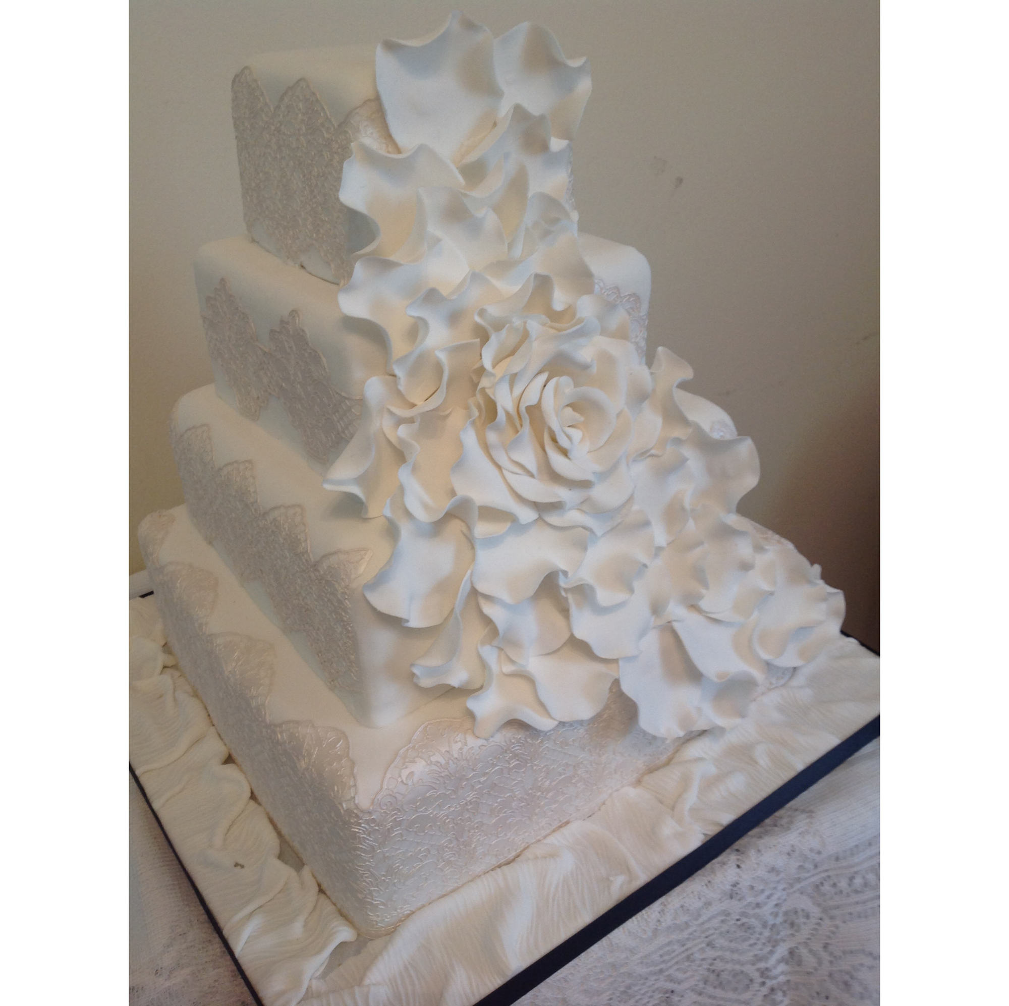 I offer a range of cake flavours from Boozy Rich Fruit Cake to Belgian Chocolate Cake. I also offer Eggless Sponge Cake along with allergy free and vegan alternatives. Whether you choose marzipan, sugarpaste, buttercream, chocolate paste or chocolate ganache you can be assured that only the very best ingredients will be used. Your cake can be adorned with swags, bows, drapes, frills, handmade sugar flowers or a hand crafted personalised bride and groom cake topper. I work with polymer clay from photographs to make your topper resemble you on your wedding day and give you a long lasting memento for years to come.