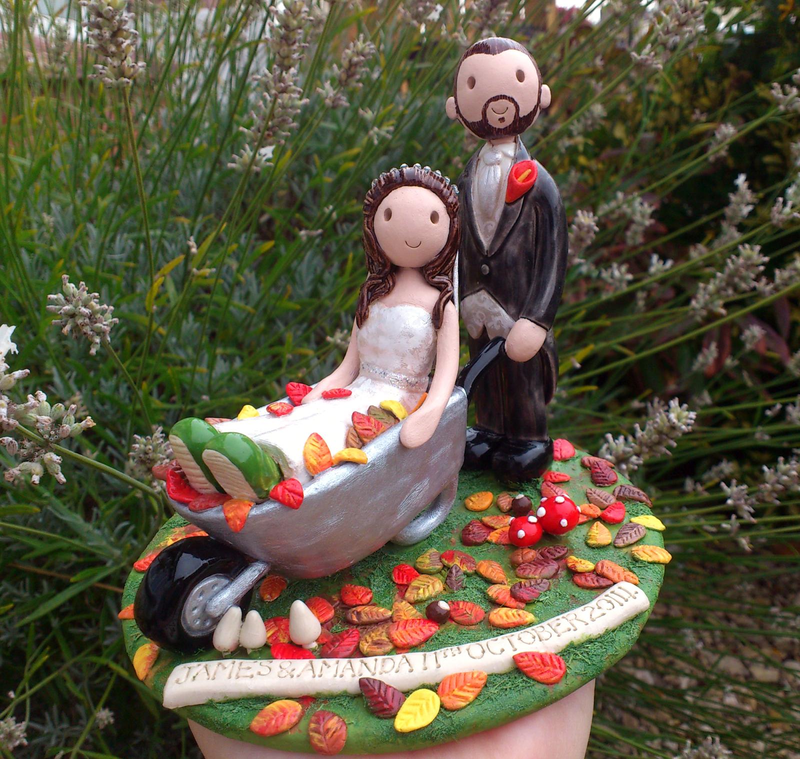 Hand crafted ceramic cake toppers, made to match you on your special day. Hobbies, uniforms and more can be included to make it personal to you. A centre piece for your special day to treasure forever.