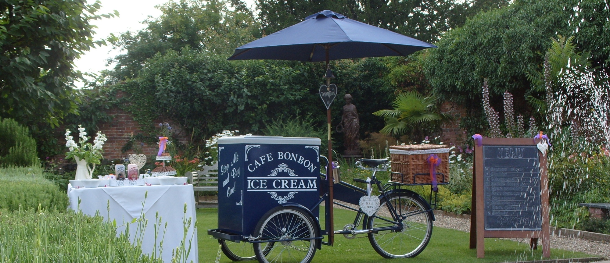 Specialising in providing truly elegant services ~ offering beautifully styled Ice Cream Tricycles with unlimited servings of West Country Ice Cream and a complimentary stylish side table brimming with delicious treats such as chocolate flakes, creamy fudge sticks, toppings and sauces ~ perfected to ensure your dream Day!