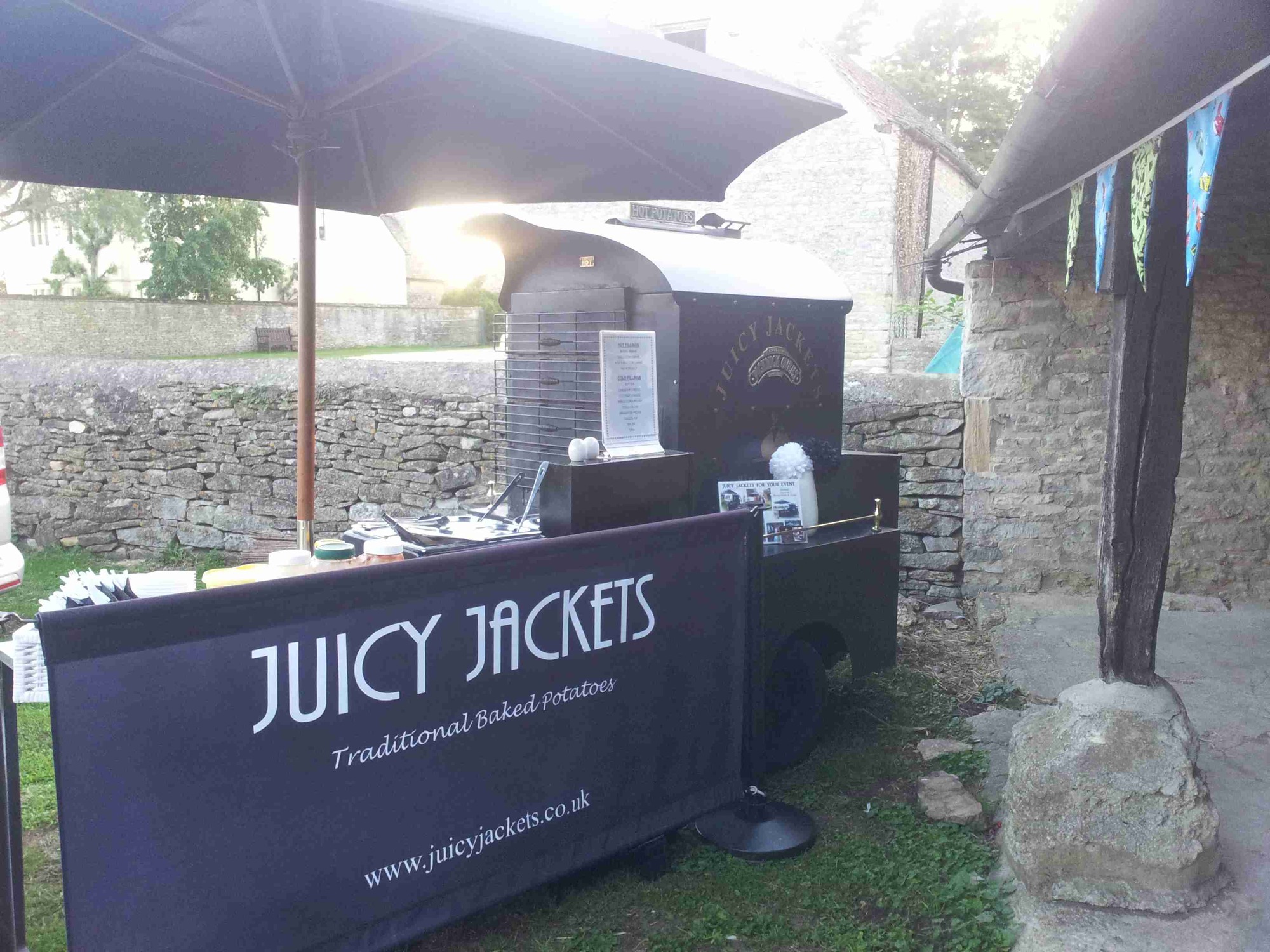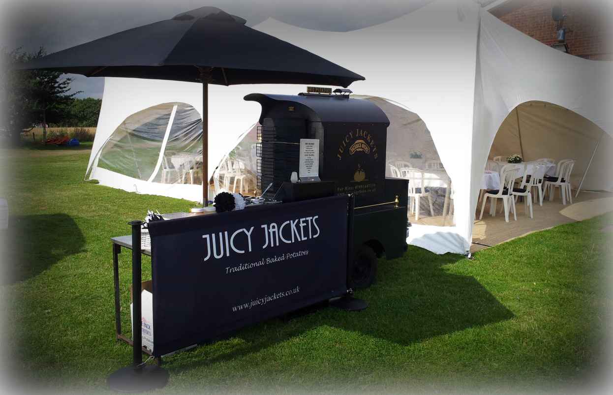Catering for your wedding is one of the biggest decisions you will make and gettting the right balance can be a thankless task. With Juicy Jackets you are safe in the knowledge that everything will be taken care of as we are wedding catering experts with literally hundreds of weddings under our belt. We know we'll be a big hit with your guests because we are told it so often and after all....everyone loves jacket potatoes! Making your big day different from the rest ensures that people will remember your wedding for the right reasons - that's why people are choosing Juicy Jackets. We have received countless enquiries for weddings from people who have attended previous events where we have provided catering - testament to our quality and service. Our Victorian style Pickwick jacket potato oven is charm personified and can blend into any environment or setting adding a touch of nostalgia and class. Contact us now for your quotation and wedding package details