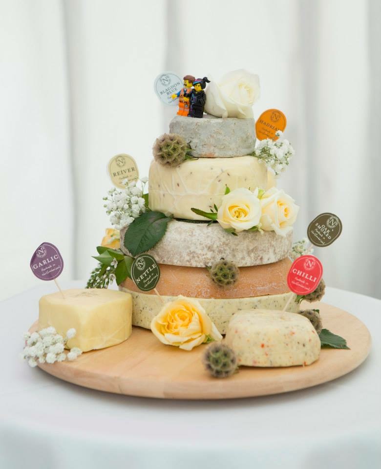 Cheese wedding cakes are becoming more and more popular, but are still a quirky and delicious end to the wedding breakfast. Northumberland Cheese Company have a vast array of cheeses and sizes, according to your tastes and party number. Our most popular cheese choices are Nettle, Oak-Smoked, and Elsdon, which is a goats' cheese.