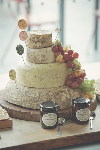 Our cheese wedding cakes will feed between 60-160 people, and they cost between £130-£330. We need 4 months' notice for cheese wedding cakes. For customers who are local to us, we hold Saturday consultations once a month. But we also have Cheese Wedding Sample Packs to order online, if you're further afield and are still interested in one of our cakes.