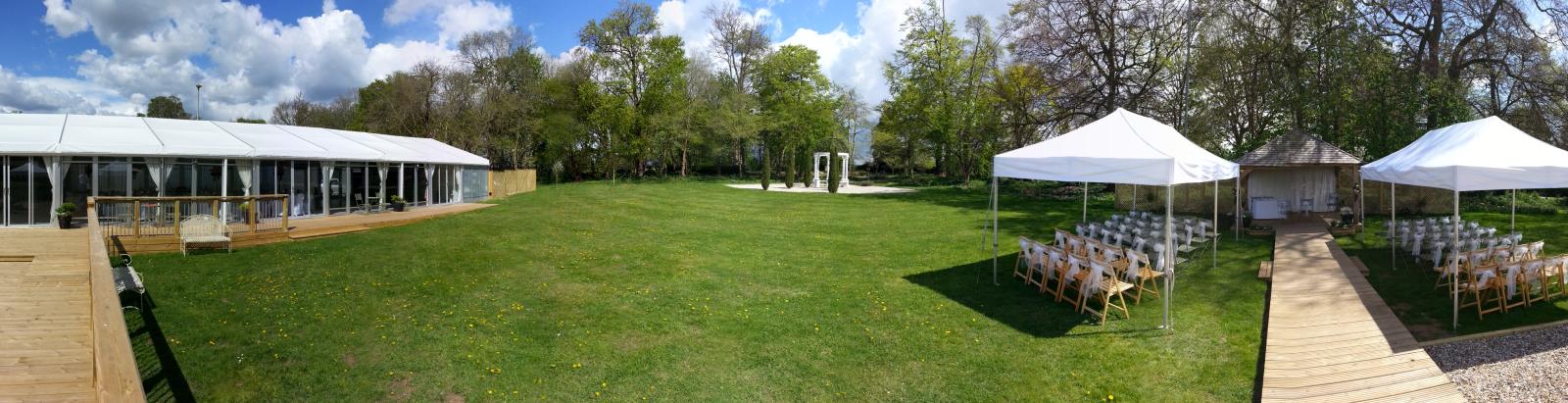 The Garden Rooms are designed to suit any style of wedding. Complete with dance floor, the marquee can accommodate up to 120 guests with a formal top table for a seated wedding breakfast and up to 250 for an evening reception. Langley Larder Events Ltd will not only help you plan your menus but will also help and guide you through the planning of your whole wedding day.