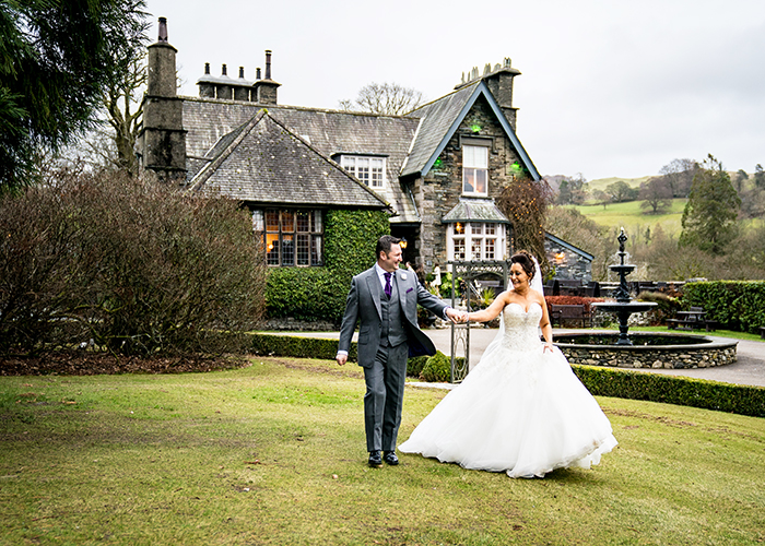 Broadoaks is the ideal fairytale Lake District wedding venue providing the perfect setting for a country chic wedding. Steeped in history with a traditional, elegant feel and some modern quirks, you will never forget this special place. The entire house and grounds can be exclusively yours from only £3,745 including 16 boutique-style bedrooms, food & drinks. It's no wonder Broadoaks is an award-winning Lake District wedding venue. The historic Lakeland building was built in 1836 and has been undergoing a significant refurbishment over the past decade. The house is surrounded by 7 acres of beautifully manicured gardens and has a breathtaking licensed outdoor wedding green with its own helipad for those who want to arrive in style. The river Troutbeck also runs through the grounds heading towards Lake Windermere and can be heard from many of the boutique bedrooms, providing a tranquil ambience. The experienced events team have organised some of the most memorable wedding days in the Lake District, making sure every detail is delivered with a truly personal touch. The best way to get a feel for Broadoaks is to book a tour with them or you can take a virtual tour on their website.