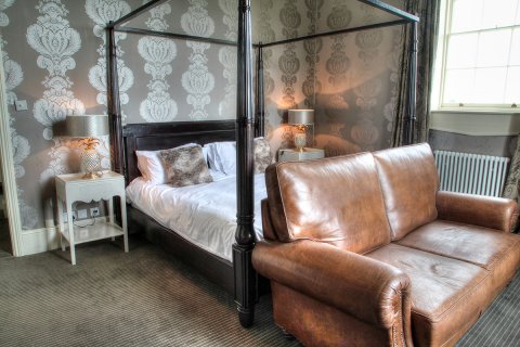 Brooks Country house a newly refurbished stunning 22 bedroom Georgian Manor House in 13 acres of beautiful grounds surrounding National Trust Park Land. The hotel is situated between the pretty towns of Hereford and Ross on Wye in Herefordshire. All 22 rooms have been newly refurbished with Cole and Son wallpapers new designer carpets curtains large Flat screen TVs and DVDs, pocket sprung mattress many in four poster beds with goose down duvet & comfy pillows. Design wise it’s an eclectic mix of modern and antique furniture quintessentially British. All bedrooms are spacious with beautiful views over the surrounding countryside. Bathrooms have roll top baths and marble or travertine tiles all with Hansgrohe fittings with good power showers. Tea Coffee and Hot Chocolate is available in all rooms. There is a pretty guest lounge with comfy sofas big fireplace to curl up too the perfect spot to read your favourite book and have some afternoon tea. The bar is well stocked with wine sprits and beers and cider locally sourced including our own house wine which is grown in the vineyard called Pengethley estate. Our restaurant serves classic brasserie food such as Moules Marinere and Hereford Steak Frites plus a great Sunday lunch with delicious Hereford Beef. We love our food and source locally and ethically. We have a civil ceremony license, we can cater for 65 in the restaurant for a wedding breakfast. Our marquee can also be hired and can sit 120 and 180 for an evening function. Leisure wise we have a games room with table tennis, table football & darts. A heated swimming pool throughout the summer, life size garden chess a special play room area for little kids up to 7 years old. Segway’s to have fun on across the fields. A beauty room and a pool room. So something for everyone to help unwind and kick back. Our vineyard is a nice spot to walk around and see the vines growing a good excuse to sample some Pengethley estate too.