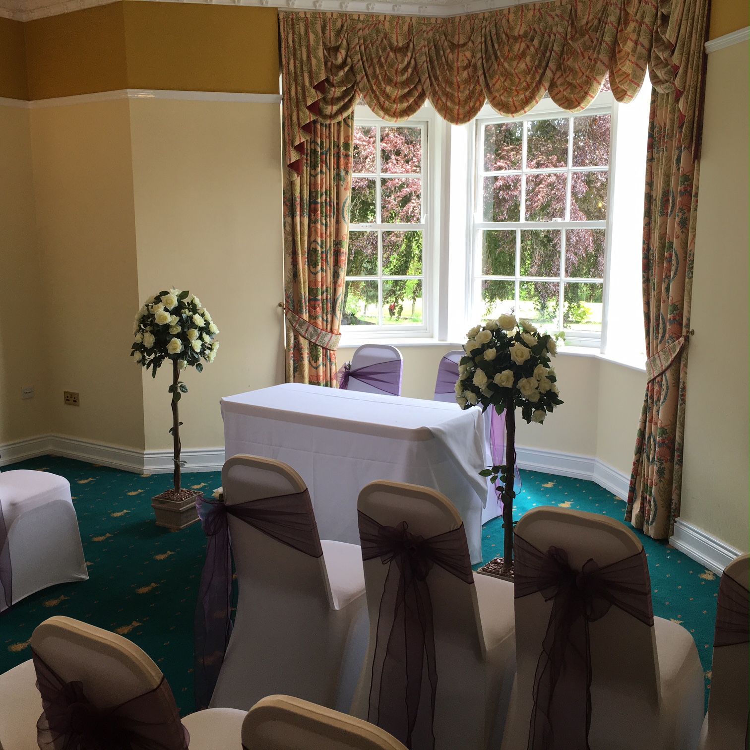 Hatfeild Hall is a beautiful 18 Century building accessed via its long sweeping tree-lined drive, you realise that you are approaching a hidden gem, so convenient, yet so remote. The setting of the Hall couldn’t be bettered, from following the driveway, with the 18 hole Golf Course on each side, passing the impressive fountain on your left, the view suddenly opens up to reveal the majestic 18th Century Hall placed prominently, looking down over the surrounding Golf Course. Its tranquillity is breath taking and will certainly leave an impression on your guests. The Hall has much history to it, including the fabled Mulberry Bush opposite its entrance, where folklore has it that a cutting from it was replanted in Wakefield Prison and the rhyme “Here we go round the Mulberry Bush” originated. Hatfeild Hall is located on Aberford Road, only approximately 1 mile from Wakefield City Centre.
