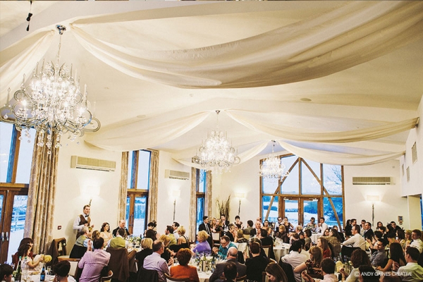 Welcome drinks and canapés can be served in the connecting Cart Barn or outside in the beautiful Courtyard, with delicious treats and exemplary service from the on-site catering experts. The contemporary Grain Store was designed with the wedding breakfast in mind. Floor-to-ceiling windows open onto the garden and views beyond, making this a wonderful setting for both summer and winter celebrations. Elegant décor includes stylish chandeliers and ceiling drapes, offering every couple a neutral colour palette upon which to impart their chosen style. As the sun goes down, this versatile space becomes your party venue with ample space for a band or DJ to entertain you and your guests.