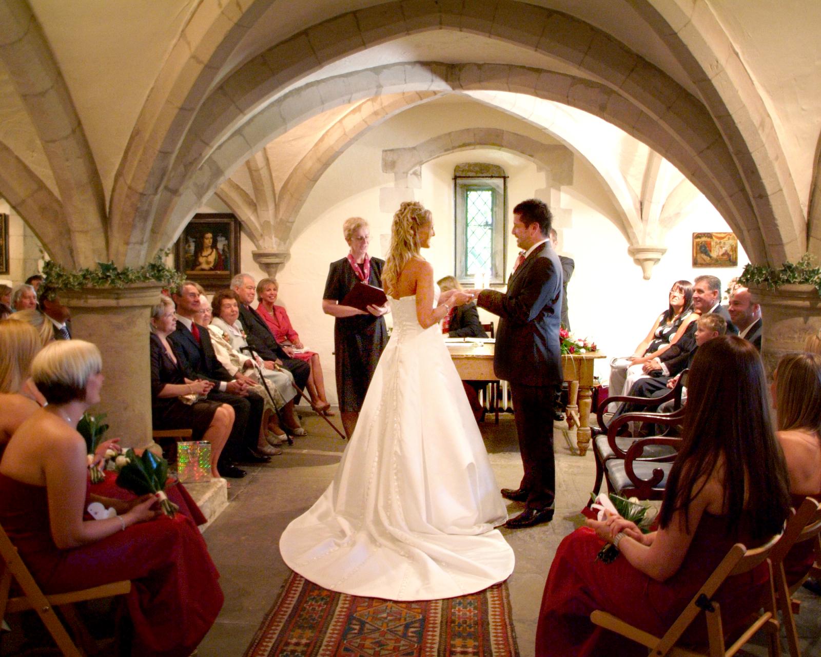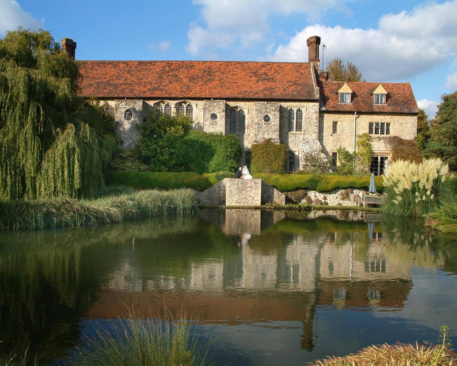 Nettlestead Place is an ancient Manor house. It was built in the 13 century and mentioned in the Doomsday Book. It is set in the valley of the river Medway with stunning views across the river to the beautiful countryside beyond. Nettlestead Place has an exceptional 10 acre garden which is starred in the Good Garden Guide. Couples have enjoyed this idyllic place for their civil ceremonies and wedding receptions for over 17 years. Civil ceremonies take place in the medieval Undercroft....... which is not in fact under ground! It is on ground floor level and overlooks a magnificent pool which elegantly reflects the house. The Undercroft can seat 120 for the ceremony and combines an intimate and cosy atmosphere with a proud and elegant formality. Most couples will then walk through the gorgeous gardens to enjoy their reception in a Marquee overlooking the river afterwards.