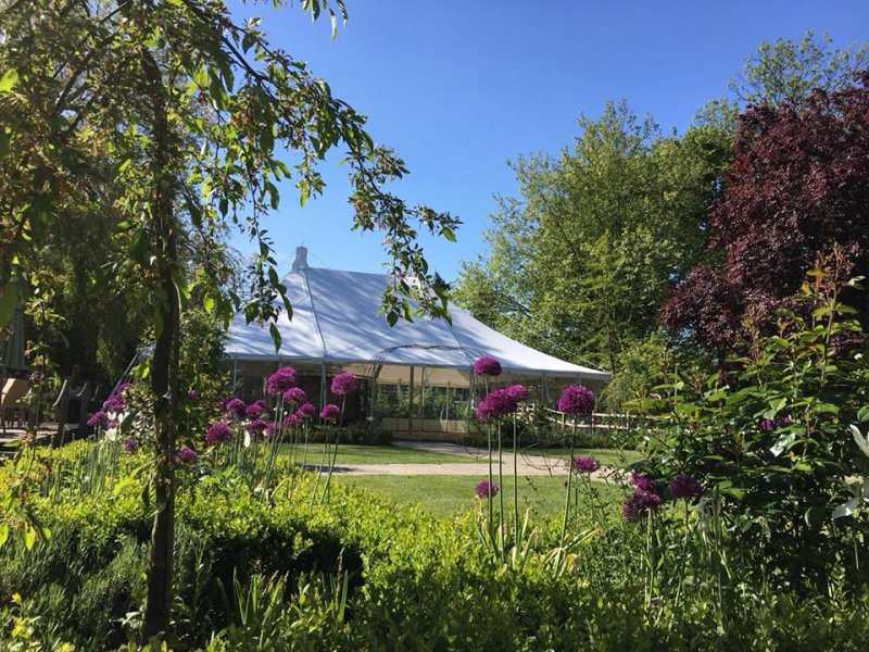 The Loggia This is designed for outdoor summer weddings (May to September). The oak-clad Loggia sits at the end of the wedding garden and is connected to a traditional marquee that offers covered seating for 100+ guests. From here it is just a short walk to the terrace where reception drinks are served.
