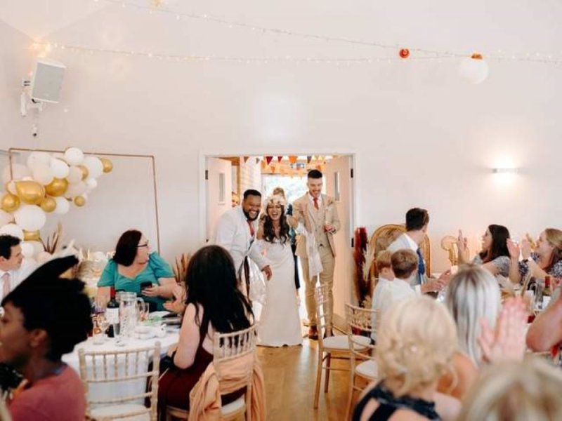 Exclusive DIY licensed weekend wedding venue in Derbyshire. Includes accommodation for 93 guests, heated indoor pool, games room, meadow, children's play area, and dog-friendly spaces. Ideal for unforgettable celebrations. The Setting:- Knockerdown offers a picturesque village setting where you can design a weekend of celebrations that reflect your personality, style, and beliefs. With the entire village at your disposal for the whole weekend, it truly becomes your home away from home. Once you and your guests arrive, there's no need to worry about driving or finding accommodation elsewhere. Park your car, check in, and unwind. Guests can choose from one of the sixteen well-equipped self-catering holiday cottages, including four that are dog-friendly. The Vibe:- Welcome to your dream wedding venue in the heart of the beautiful Peak District. Knockerdown offers rustic charm and serene ambience, this venue is designed to make your wedding unforgettable. Planning a wedding can be overwhelming, but the experienced events team is here to support you every step of the way. We are dedicated to making your wedding weekend as stress-free and enjoyable as possible. Friday: Your wedding weekend kicks off with the arrival of you and your guests. Settle into the cosy cottages, each designed to make you feel at home. Spend the afternoon decorating the venue with your loved ones. Saturday: Take time to relax and enjoy some pampering with your chosen hairstylist and makeup artist. As the afternoon arrives, so does the moment to celebrate your love. Choose to exchange your vows in the charming outdoor gazebo or opt for the intimate indoor setting. After the ceremony, let the festivities begin! Sunday: Continue the fun with various activities to enjoy with your loved ones. Host a large BBQ in the meadow with stunning countryside views, hire inflatables or a mini-golf course for entertainment, or take a relaxing dip in the heated indoor pool. Monday: As the weekend concludes, it is time to say goodbye. Depart with hearts full of joy and memories that will last a lifetime.