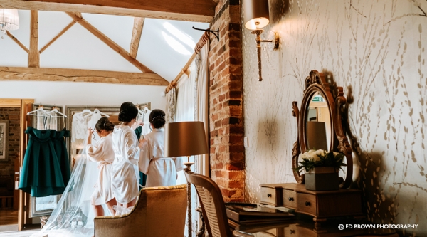 Ceremonies can take place both inside and out, under the garden gazebo on a summer’s day, or in the spectacular Oak Barn. With an oak frame reaching up two storeys high, and full-height windows, this light-filled room can seat up to 150 guests for your civil ceremony. A perfectly positioned minstrels’ gallery is just the place for musicians, and for your photographer to capture some magical moments. The new bridal dressing room means you have a peaceful and light-filled space to primp and preen with your loved ones before you exchange your vows, just a few steps from both ceremony settings.