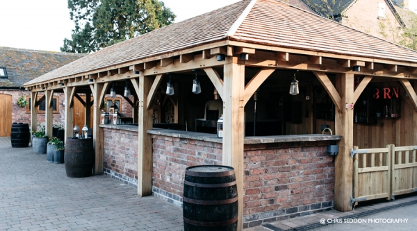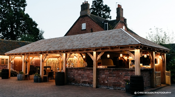 Mythe Barn, pride themselves on offering delicious food, from the more formal wedding breakfast to casual evening feasts. On summer evenings, the impressive Outdoor Kitchen in the Courtyard can produce all manner of spectacular street food options. From wood-fired pizzas to sizzling wok food and mouth-watering barbecue, you can really treat your guests to something special. You’ll find a fully stocked bar in the Cart Barn too, just a few steps away.