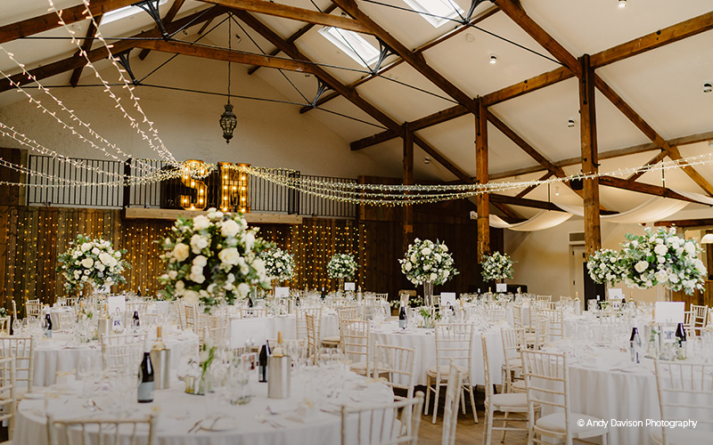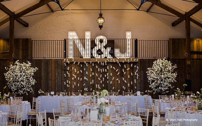 Alternatively, explore a little further and you’ll find The Orangery. You can just imagine the sweet-smelling fruit wafting through the door of this pretty building once upon a time, with its large windows, stone flooring and white busts perched atop pedestals. The light is just right in here and perfect for professional photographs, much like in The Great Barn, which is a short walk away. Ideal for a vibrant reception party, The Great Barn is grand and spacious, allowing you to put your stamp on it. Hire live entertainment, enjoy a sit-down dinner and toast the speeches here, with The Long Room next door available for a relaxing escape from the main event.