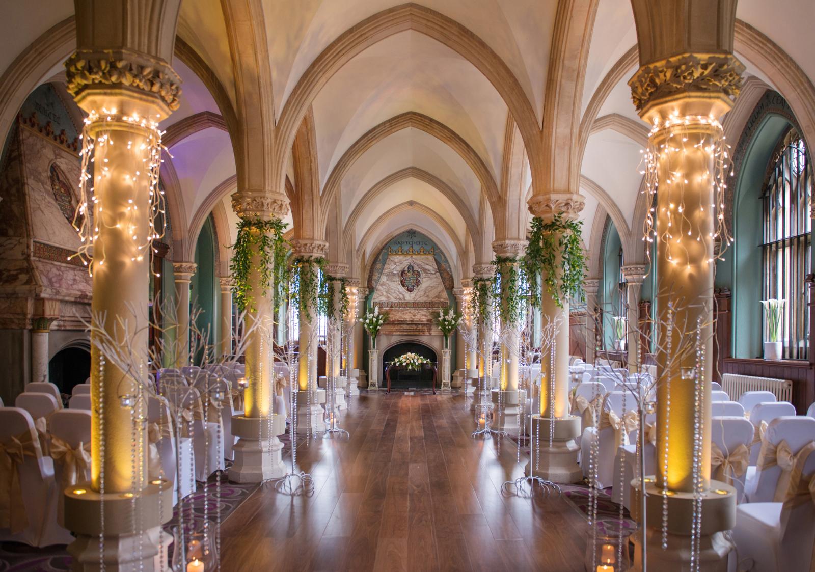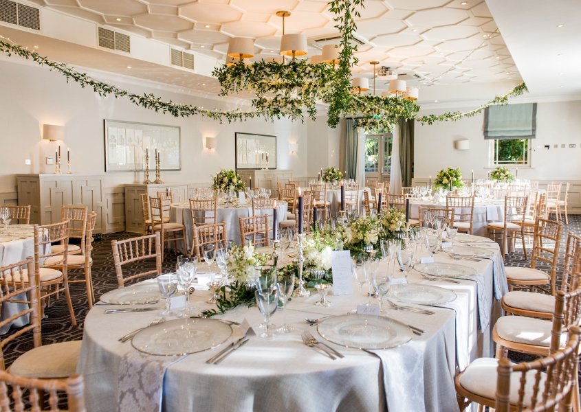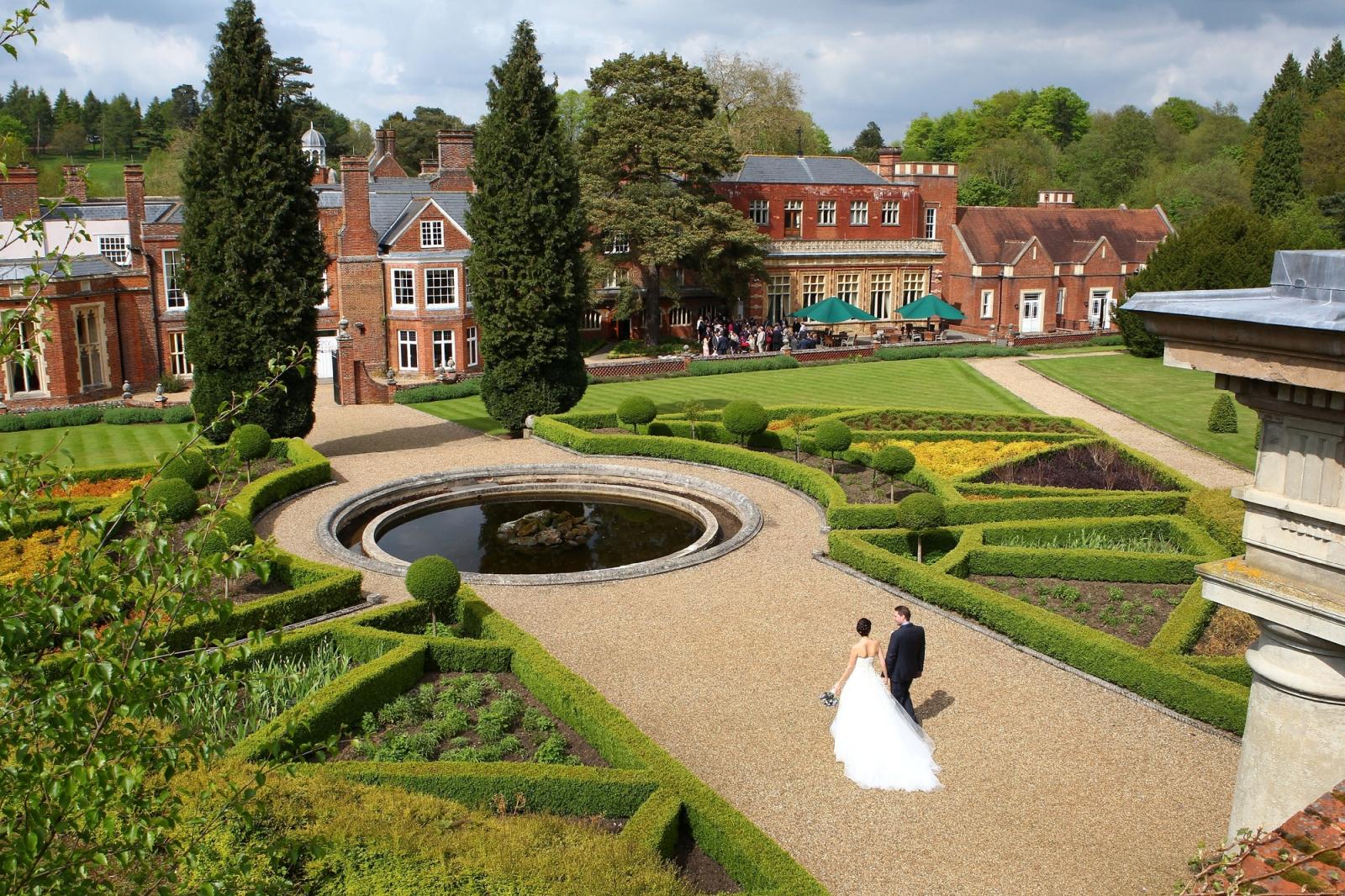 As you approach Wotton House, you and your guests are sure to be amazed by the spectacular view. Located in Dorking, the grand building is set within immaculately manicured gardens, which feature a beautiful private walled garden, temples, ponds and streams with ornate bridges. The 17th-century architecture and outstanding grounds provide spectacular backdrops for your important photos. If you choose Wotton House for your ceremony, there are two fantastic spaces to choose from. Our beautifully finished Old Library is a truly majestic setting for exchanging your vows. The room boasts ornate, welcoming fireplaces, a grand vaulted ceiling and hand-painted detailing, providing your ceremony with an enchanting and elegant atmosphere. Alternatively, if you would prefer an outdoor ceremony, the spectacular Roman-style temple within the 17th-century, private walled garden is simply stunning. The grand structure is not only a delightful setting for your service, but a unique backdrop for your treasured wedding photographs. By night, the temples are lit with tea lights in the grottos, offering a new and magical setting for even more stunning photos. The 1877 bar is the perfect setting for your drinks reception. The space is full of magnificent 17th-century frescos and offers direct access to the outdoor terrace. Our self-playing grand piano will accompany your refreshments beautifully. The Evelyn Suite has recently been refurbished to offer a bright and contemporary celebration space. The reception suite’s three double doors open out onto the 13 acres of beautiful gardens, with a side door leading to our fairy-tale grotto. Please contact us to discuss your dream day: 01306 730 000.