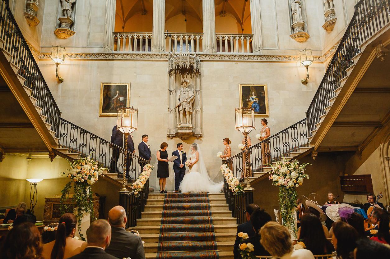 Once a royal residence to King Henry VIII and home to his daughter Princess Elizabeth I, Ashridge House is the dream wedding venue for your special day. Ashridge House is a spectacular, award-winning wedding venue in leafy Hertfordshire, only 30 miles from London and surrounded by 190 acres of beautiful private gardens. Licensed for civil marriage and partnership ceremonies for up to 180 guests, couples can choose to exchange vows in a number of breath taking locations. The most popular choice is on the magnificent sweeping staircase overlooking the Grand Hall, however if the sun is shining, using the South Terrace as your stage is a magical option as you can take advantage of the beautiful views to our private gardens. The Victorian Fernery is another lovely venue offering a more intimate feel for smaller weddings. The wedding ceremony, conducted by Dacorum Registrars, can be tailored to suit your special day. We are also able to offer Anglian blessings in our Chapel. Ashridge House has beautiful heritage function spaces perfect for each element of your wedding, meaning that your guests will be continually wowed by their spectacular surroundings. Every room has its own distinct personality, from the palatial marble fireplaces and opulent gold leaf-adorned ceilings of the Lady Marian Alford Room to the original Austrian wood panelling of the Wyatt Room. All function spaces interconnect, so your guests can move easily between the rooms, creating a natural flow to your day. If you would like to share your special day with additional guests, we can host up to 280 guests in our largest space for a formal sit-down dinner and up to 350 for a reception. Our talented team of executive chefs offer an exciting range of menus and will cater for all dietary requirements; please do let us know if you have a particular theme or menu in mind. Ashridge House has 190 ensuite bedrooms onsite, and all guests have complimentary parking, so your guests can relax and make themselves well and truly at home. You can rest assured that your dedicated wedding co-ordinator will ensure the venue is prepared to the finest details on the day and ensure your wedding flows smoothly from beginning to end, helping you to create magical moments you will treasure for a lifetime. If you would like to know more about hosting your fairy-tale wedding at Ashridge House, please do not hesitate to contact our friendly events team. We look forward to welcoming you to Ashridge House! • Our talented team of creative chefs can cater for all dietary requirements. • Ashridge House offers a variety of period function rooms for your special day; no waiting for rooms to be turned around! • Dedicated venue coordinator on-hand to help plan every detail and ensure the smooth running of your day. • 190 ensuite bedrooms for your family and friends to book. • 190 acres of beautiful private gardens perfect for your wedding photographs