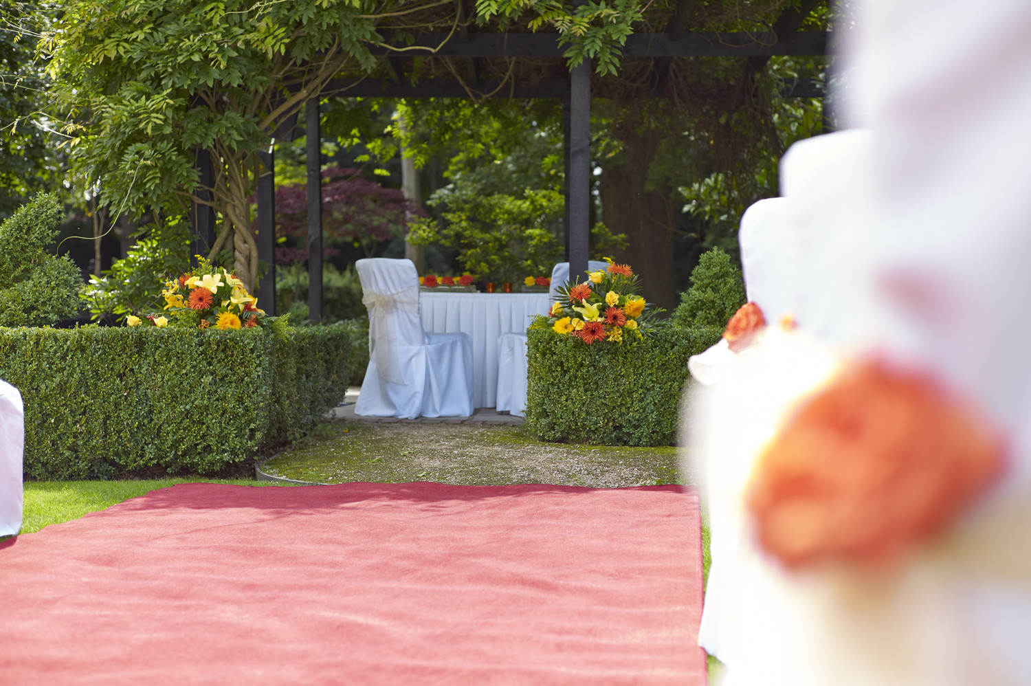 The Thames Suite with floor to ceiling windows and a private bar and outdoor terrace is perfect for wedding ceremonies and receptions, the dedicated entrance and parking area make it perfect for large wedding parties to celebrate in private. The Bulstrode Suite has been recently refurbished and provides a stunning setting for a wedding; the large bay windows flood the room with natural daylight and offer exquisite views of the landscaped gardens. The Buckingham Suite with its unique atrium roof and the Chalfont Suite are both sensational settings for a ceremony, reception meal and party.