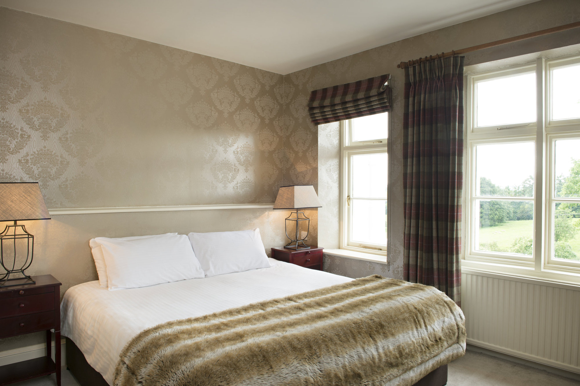 Brooks Country house a newly refurbished stunning 22 bedroom Georgian Manor House in 13 acres of beautiful grounds surrounding National Trust Park Land. The hotel is situated between the pretty towns of Hereford and Ross on Wye in Herefordshire. All 22 rooms have been newly refurbished with Cole and Son wallpapers new designer carpets curtains large Flat screen TVs and DVDs, pocket sprung mattress many in four poster beds with goose down duvet & comfy pillows. Design wise it’s an eclectic mix of modern and antique furniture quintessentially British. All bedrooms are spacious with beautiful views over the surrounding countryside. Bathrooms have roll top baths and marble or travertine tiles all with Hansgrohe fittings with good power showers. Tea Coffee and Hot Chocolate is available in all rooms. There is a pretty guest lounge with comfy sofas big fireplace to curl up too the perfect spot to read your favourite book and have some afternoon tea. The bar is well stocked with wine sprits and beers and cider locally sourced including our own house wine which is grown in the vineyard called Pengethley estate. Our restaurant serves classic brasserie food such as Moules Marinere and Hereford Steak Frites plus a great Sunday lunch with delicious Hereford Beef. We love our food and source locally and ethically. We have a civil ceremony license, we can cater for 65 in the restaurant for a wedding breakfast. Our marquee can also be hired and can sit 120 and 180 for an evening function. Leisure wise we have a games room with table tennis, table football & darts. A heated swimming pool throughout the summer, life size garden chess a special play room area for little kids up to 7 years old. Segway’s to have fun on across the fields. A beauty room and a pool room. So something for everyone to help unwind and kick back. Our vineyard is a nice spot to walk around and see the vines growing a good excuse to sample some Pengethley estate too.