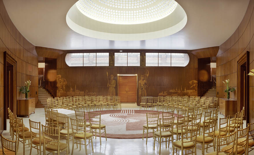 The stunning circular wood-panelled Entrance Hall, exquisitely picked out in shades of coffee and cream, is where many couples choose to say ‘I do’ with 100 of their friends and family watching on. Brides can make a grand entrance down one of the curved staircases before the couple exchange vows beneath a glass dome. After the ceremony, French doors lead directly to the terrace beyond, where you can raise a glass to your future overlooking the flower gardens.