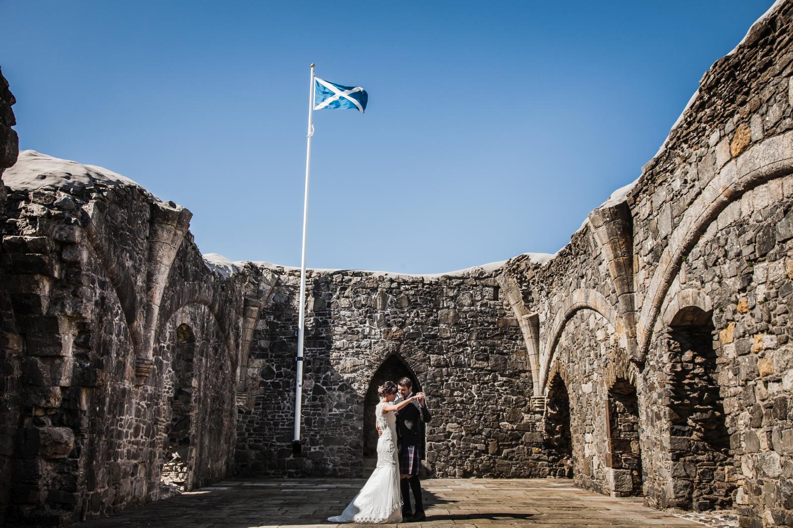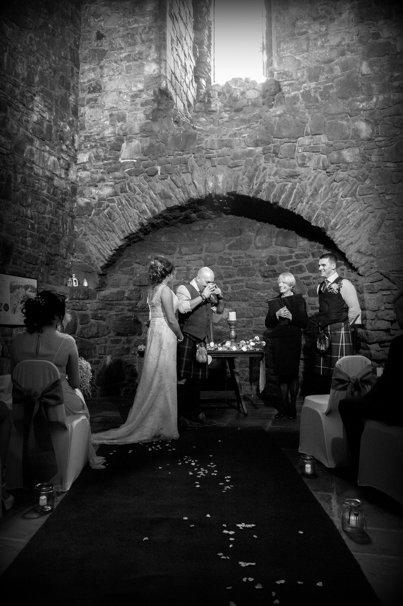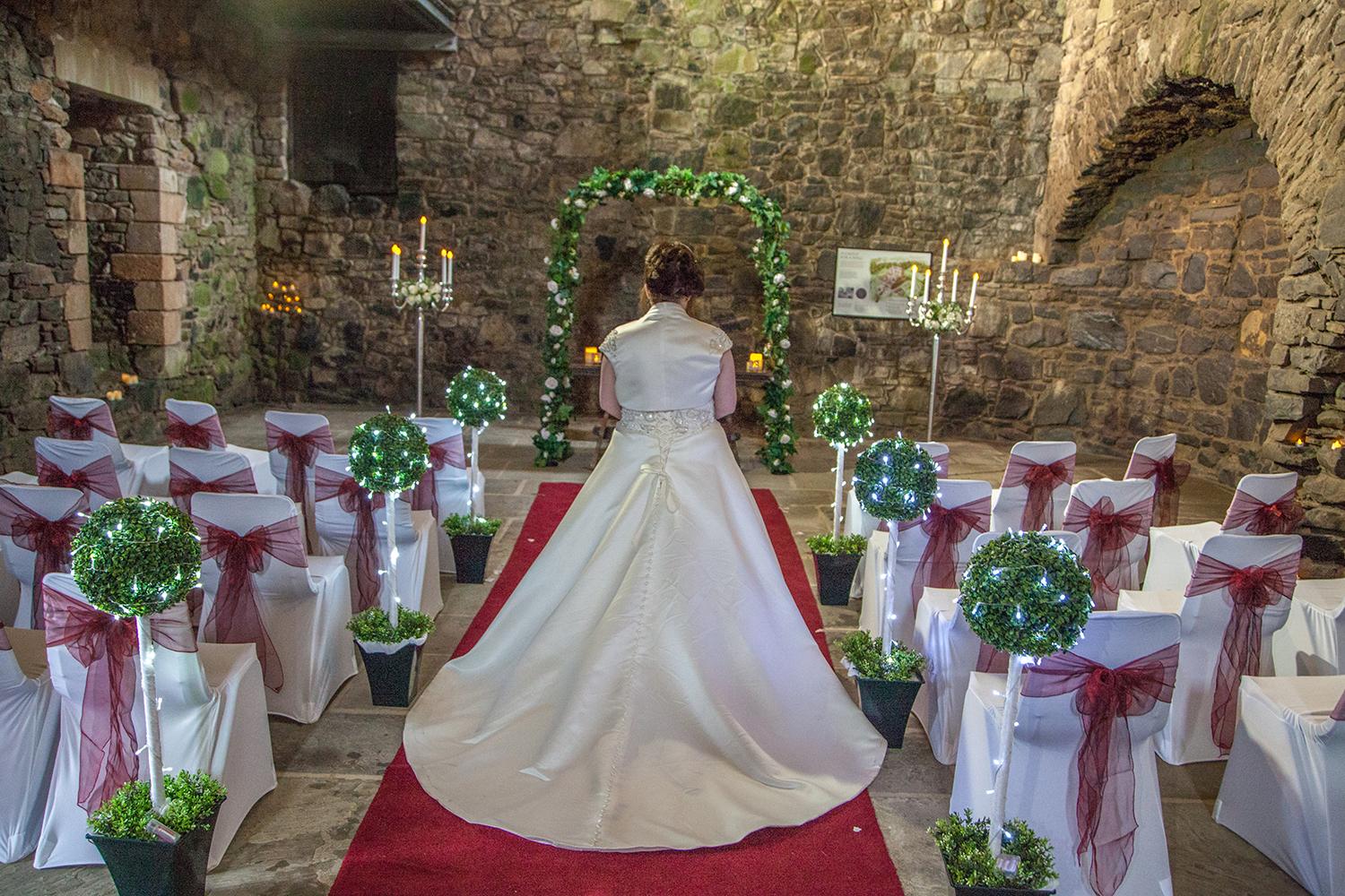 The ceremony is held in the magnificent interior of the castle. With its barrel-vaulted ceiling, considered one of the best examples of its type in the country, the rugged interior lends itself as a backdrop to individual and personalised styles of ceremony. With a beautiful interior ground floor that is very spacious with great acoustical qualities, Dundonald Castle is the perfect venue in which to celebrate your Special day.