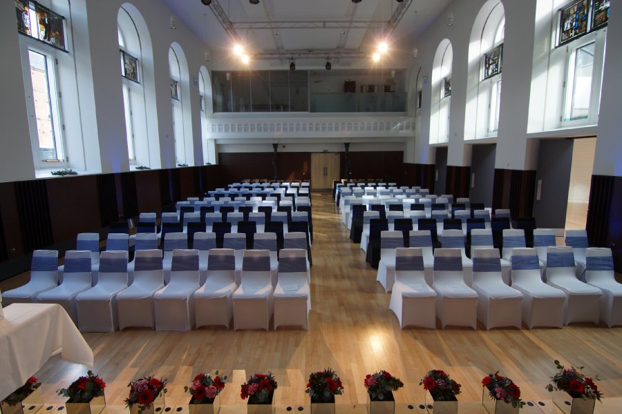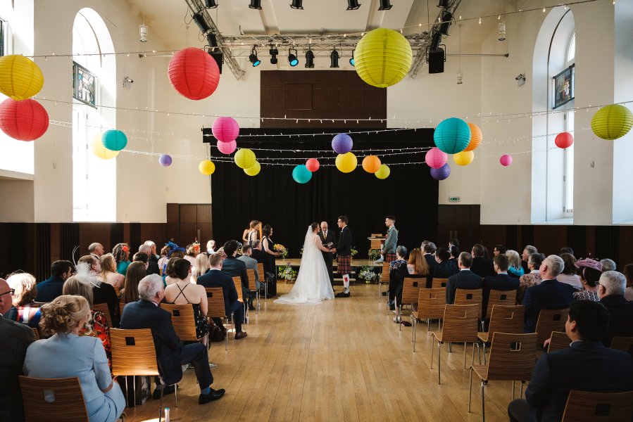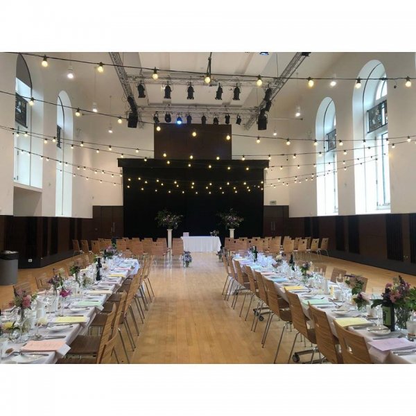 Almost 140 years of history and fine elegant style add character to this wonderful listed building. Immerse yourself in the glowing warmth and atmosphere of our spaces designed for entertainment and enjoyment and loved by many generations. Our Main Hall is the centrepiece of the building, with elements dating back to 1878, including the unique Stephen Adam stained glass on display at the top of our windows. The Halls are a light and airy space with a modern finish adding a beautiful backdrop to your ceremony or reception. The Halls were refurbished in 2012, bringing a whole new lease of life to this historical building. This makes it the perfect wedding location, with all the character of an old building, but with the convenience of modern facilities. Our Main Hall features a full lighting rig, plus a digital projector and large screen to give you the opportunity to play a video or a slideshow of photographs to add that personal touch to your ceremony or reception. We also have a full PA system with microphones for those all-important wedding speeches! The building is fully accessible, with automatic front doors, wheelchair access throughout, lift access to the upper areas and a hearing loop. There is also an accessible drop-off point at the entrance gates on Gairbraid Avenue, allowing easier access for visitors with limited mobility. The large windows throughout the hall allow for lots of natural light, bringing the blue skies inside! Additionally, our Outdoor Courtyard offers the opportunity to get some fresh air and to take some unique photographs with the historic lamp post. We are very much a DIY venue when it comes to weddings, so the hall can be decorated to suit your own tastes. Whether your colour scheme is Something Blue, or all the colours of the rainbow, you can bring in decorations including chair covers, centrepieces and flowers to make the Hall your dream wedding space. We can also discuss the possibility of customising the hall lights to complement your décor. Maryhill Burgh Halls works with a carefully-chosen board of partnered caterers. With a variety of food and bar suppliers to choose from, you can be assured that our caterers will be able to work with you to devise the perfect menu for your big day. As we work exclusively with these caterers, we don't allow for self-catering or the use of companies not on our partners list. This ensures your food and drink will be of top quality, with the highest level of service. Our caterers are very adept at accommodating a range of menu types, tastes and dietary requirements and have vast experience in catering events large and small. They will work with you from the start to ensure your catering is as perfect as the rest of your day.