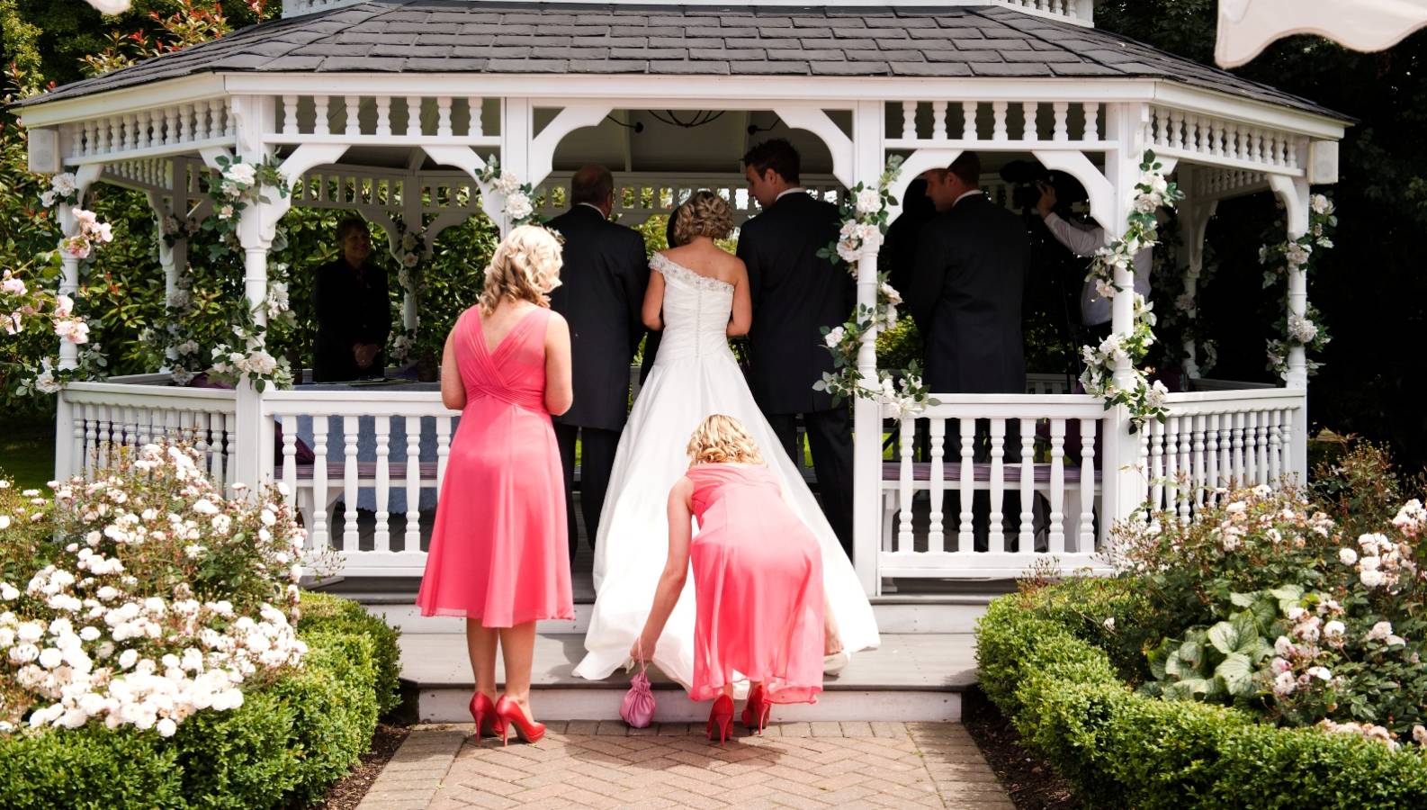Our wedding ceremonies are either held outdoors in our picturesque gazebo (during the Spring and Summer months) or in our contemporary oak framed barn all year round for up to 150 guests. However, the magnificent barn is available all year round.