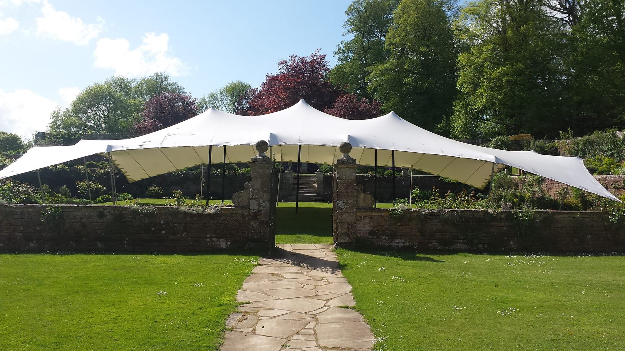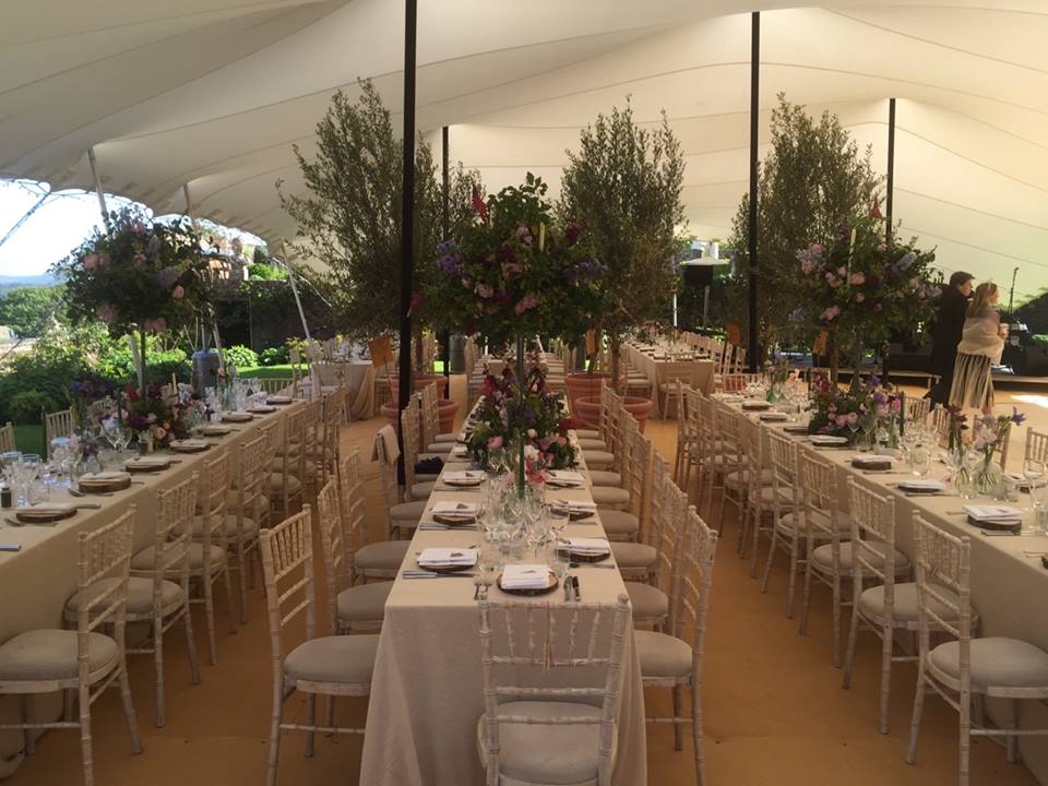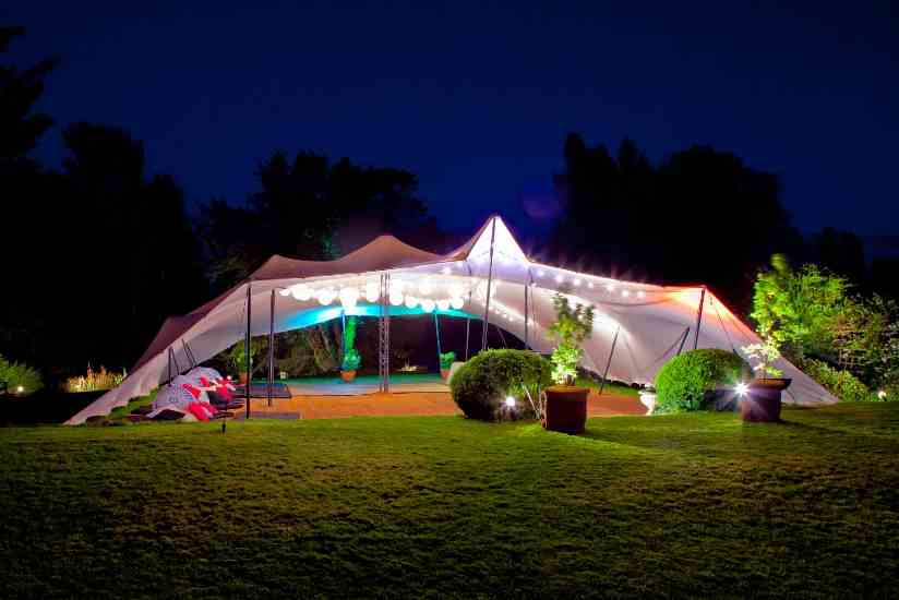 We specialise in a form of Marquee, called Stretch Tents. These gorgeous canopies can be supplied in a range of colours and sizes to suit any taste and budget. Its lines and beautiful form sets a Stretch Tent apart from any other form of marquee, and ensures it will stand out from the crowd. They can be set up in any way that the client requires, and can cover the most irregular of spaces. Not only do we provide the tents, but we can provide everything that you may require including furniture, dance floors, lighting, heating, generators and much more. As a result we can offer a package deal that means you only have to deal with one person, and know that everything will be ready for your special day. The Stretch Tent system is incredibly weather proof and can cope with even the most English of summer days! With their multi-faceted nature comes their ability to enhance and include the surroundings which you have spent so long choosing.