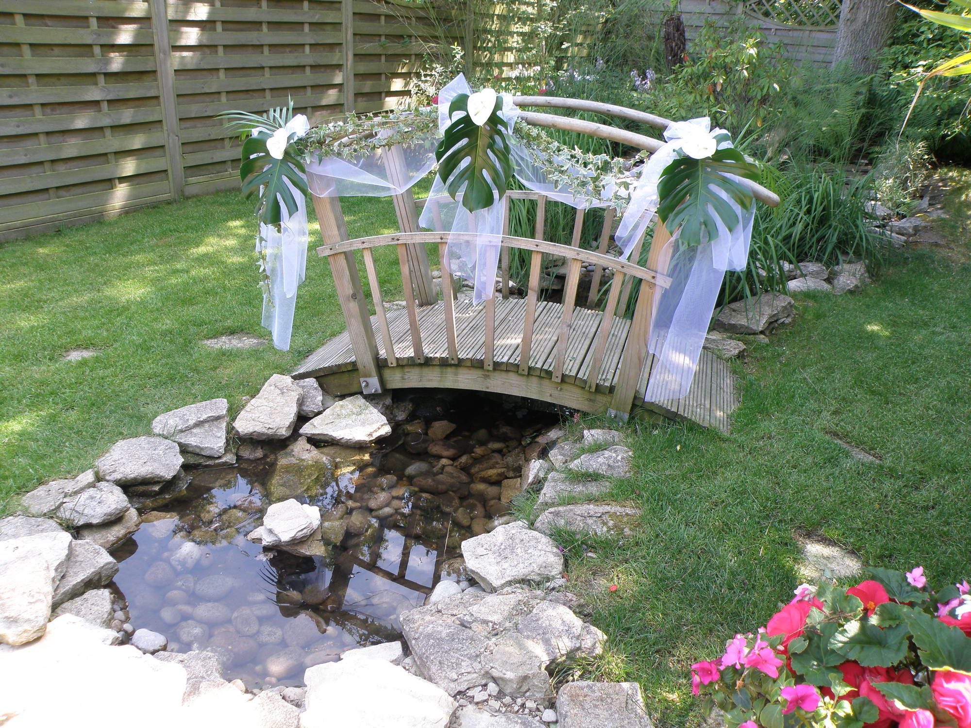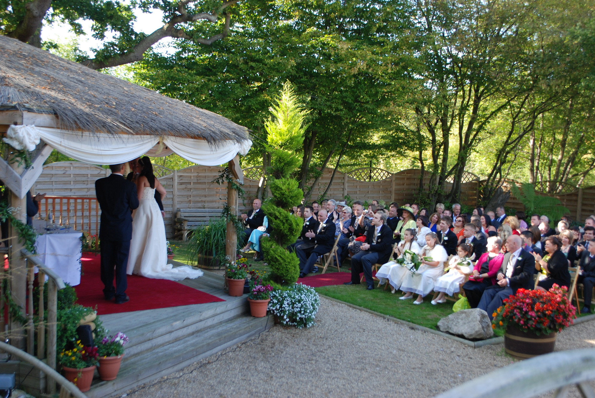 We have an opulent marquee accommodating up to 180 people for a sit down meal and licenced for civil ceremonies. The Marquee is located in a private area of the Park with a beautiful secret garden with pergola, stream and bridge perfect for wedding photos either before or after the ceremony. Complete with a fully licenced bar and resident DJ our private marquee makes the perfect venue for your wedding ceremony and reception.