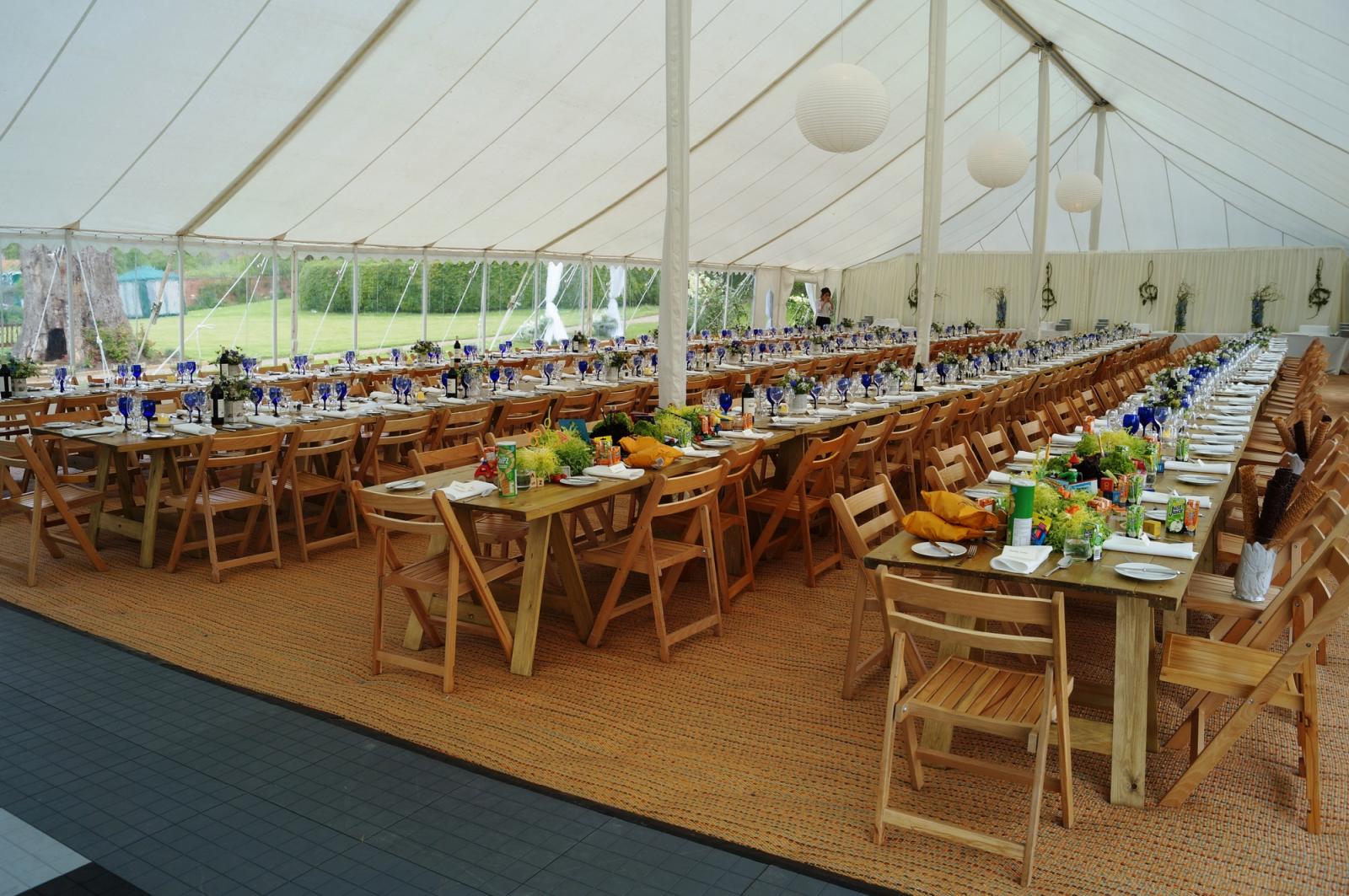 In addition to marquee hire we offer furniture, flooring, heating and both inside and outside lighting. Much of the furniture has been created in our workshops in response to clients demand.