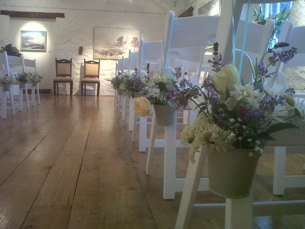 The Art Gallery Licensed for civil ceremonies, The Gallery measures 36ft x 16ft and links through to the Corn Barn. Holding up to 100 people, with views out across the middle courtyard to Dartmoor, the Gallery is peaceful, beautiful space. Access to The Gallery is via 13 external granite steps from the middle courtyard, or from the Corn Barn, or from within the main house for those with walking difficulties. There are two toilets within easy reach of The Gallery, for use during the ceremony.