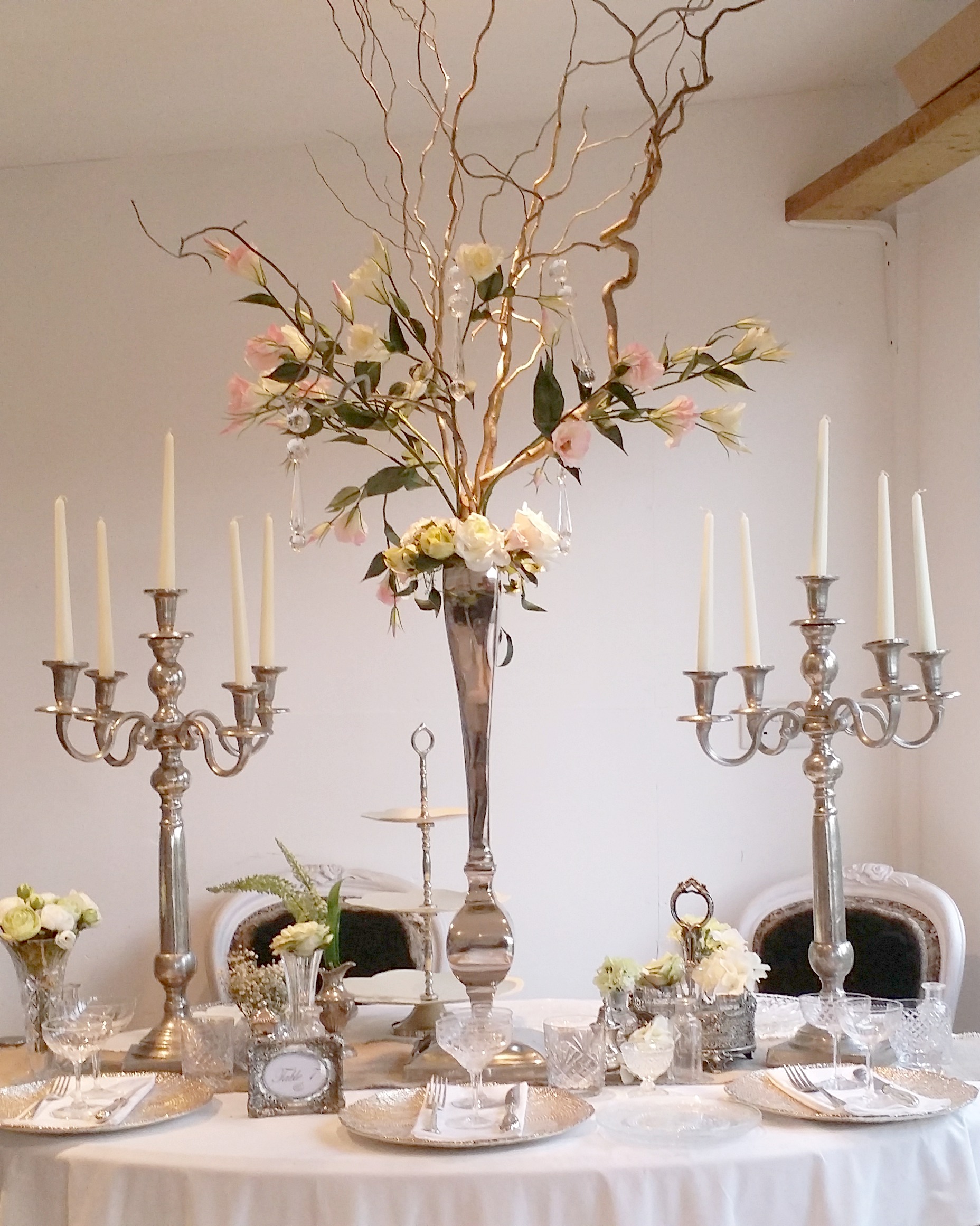 Be Inspired by a visit to our website, it is packed with ideas and pictures of props to hire. With a Classical Elegant style our products and styling focuses on the tasteful elegance of "WOW" hire our props and or our creative styling. Currently we are working on tall but elegant table centres up to 2m high , hanging bespoke decor from the ranfters and stunning arch decor, we love getting creative and it is surprising what can be achieved on a budget. We use the tricks of the trade to give any event a WOW without a WOW cost. We offer for hire of stunning Downton vintage furniture pieces, larger quanities of gold, silver, white candelabras, beautiful vintage champagne saucers/coupes ( 350 avaialble), silver plated cutlery, and loads more but all with a touch of understated elegance.... We also source and buy for events too.