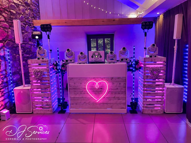 Your wedding day is a once in a lifetime event; every detail, including the party celebration, should be perfect. That's where DJ Services Cornwall with our Premium Wedding DJ Services, comes in, and we would love to be a part of your big special day. We are a team of 2, Leon and myself (Al), multi-award-winning wedding DJs. With premium sound equipment, quality lighting, a carefully curated playlist with your input, and a commitment to excellence, we will ensure that your wedding day is everything you've dreamed of and more, catering for the most intimate wedding celebrations and scaling up to festival/club-type celebrations. With 7 National award-winning themed DJ booths to suit your venue or theme, delivering something truly unique and personal and that ultimate wow factor, also providing a personalised Mr & Mrs (Surname) Gobo projected onto the dance floor. We offer extensive complementary services in addition to our premium wedding DJ packages; Various Evening and Day Packages are available Premium Lighting and Audio Equipment option to scale up to larger venues and Marquee Weddings. Options to add; Wedding & Party Photography Party Video Confetti Cannon LOVE Letters (Standard & Modern Shabby Chic) Post Box (Shabby Chic) Personalised Custom Neon Signs are available Selfie Wizard (Photobooth) Dancing on the cloud Computer-controlled laser shows Sophisticated Computer Controlled Venue Uplighting Radio Mics for speeches and reception music Multi-Room Music Setups are available Multiple backup solutions are in place Contribution to Party Playlist Upgrade to our ultimate Club Festival Pack DJ Services Cornwall is all about the whole performance. While quality audio is a must, sophisticated computer-controlled lighting is a close second, bringing the entire performance together to give you and your guests the ultimate party celebration experience. Details of which can be found here with current pricing djservicescornwall.co.uk/p...pricing/wedding-dj-prices/. Please confirm which Premium DJ Package suits your requirements, any additional services you may require, and your venue. Then we can provide an accurate quote for your 2025 and beyond wedding. No Wedding DJ within Devon & Cornwall offers the quality and services we do. So why settle for less when you can have the best? Let's create the ultimate wedding day celebration you and your guests will remember for years. Experience the magic of a truly exceptional DJ with hundreds of 5-star reviews across various platforms. Cornwall's highest-rated DJ on Google, we take pride in delivering passion and professionalism to ensure you receive the highest quality service for an unforgettable party celebration. Reviews can be found at https://goo.gl/imaaoy under the reviews tab. We will contact you in a few days after you have had time to digest our offering, and we are always available and happy to chat through options that fit your vision for your big day.
