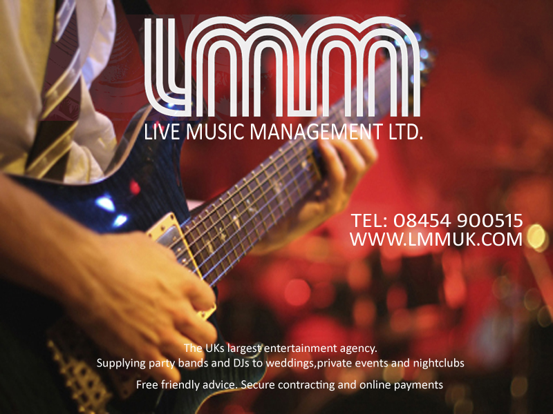 Live Music Management are the UK's number one supplier of live bands and DJs to weddings. We are the company that wedding planners choose for their entertainment needs and we pride ourselves on offering a free and honest service. Live Music Management were established in 1999 and supply acts to weddings throughout the UK and overseas. Our biggest wedding was for 5,000 guests in India . Our smallest was at the Savoy Hotel where twenty guests enjoyed our solo classical guitarist. Live Music Management pride ourselves on offering the perfect entertainment for every event. As a client you can browse our easy to use website where you will find hundreds of sound files and videos for a wide range of acts or you can call our friendly office team who will be sure to suggest the right band or DJ for your wedding.