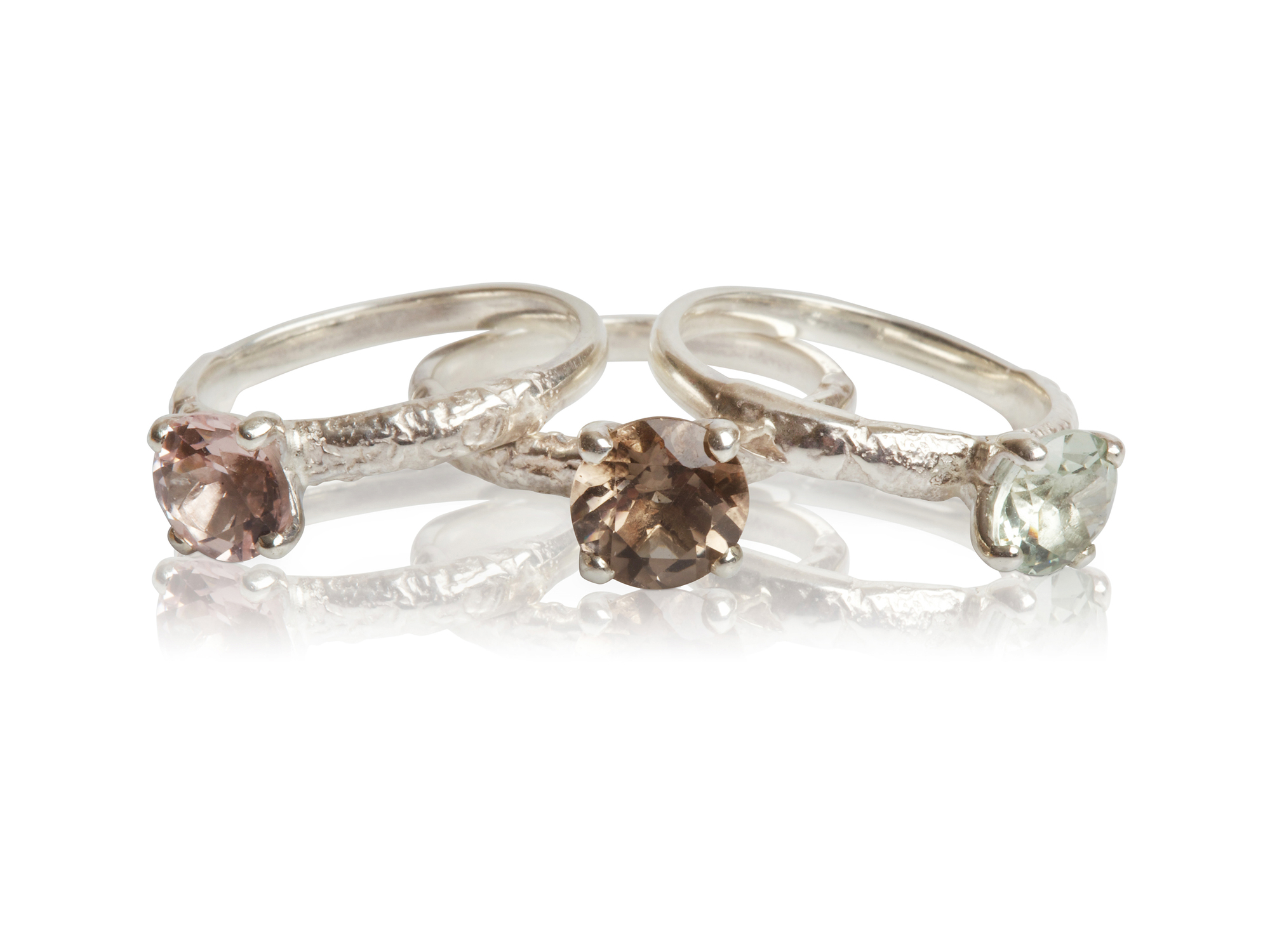 Scarlett’s work is inspired by her love of creating contrasting textures using precious metals. Scarlett’s work is further enhanced through her intricate use of stone settings using precious and semi precious gemstones adding elegance and colour to her jewellery.