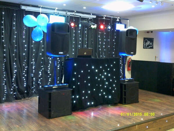 We use good quality sound equipment. Our lighting includes 4 overhed gobo LED lights (disco lights which fill the room). A red / green cluster laser for added effect. Starcloth around D.J. stand for neatness and pleasent apperance. We also use Up-lighters which can be placed around the room to colour wash the walls to match a colour theme.