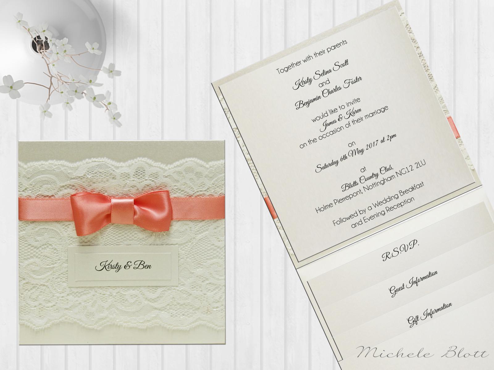 Our Commitment We appreciate the importance of all aspects of your wedding and that all elements both big and small contribute to the overall tone of your perfect day. Our commitment to quality and service is unequalled. At Elegant Wedding Stationery by Michele Blott our fast and effective personalisation service is backed up by a small team of expert staff. Whether you are choosing simple wedding invitations or a whole range of wedding stationery, each order is treated with absolute care.