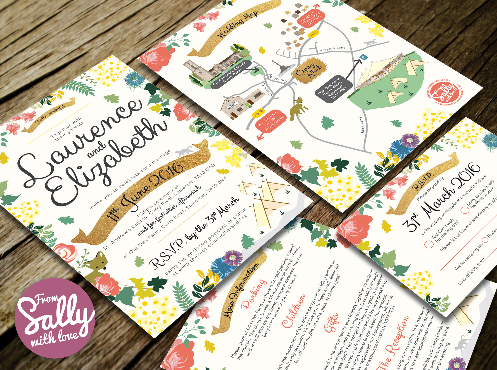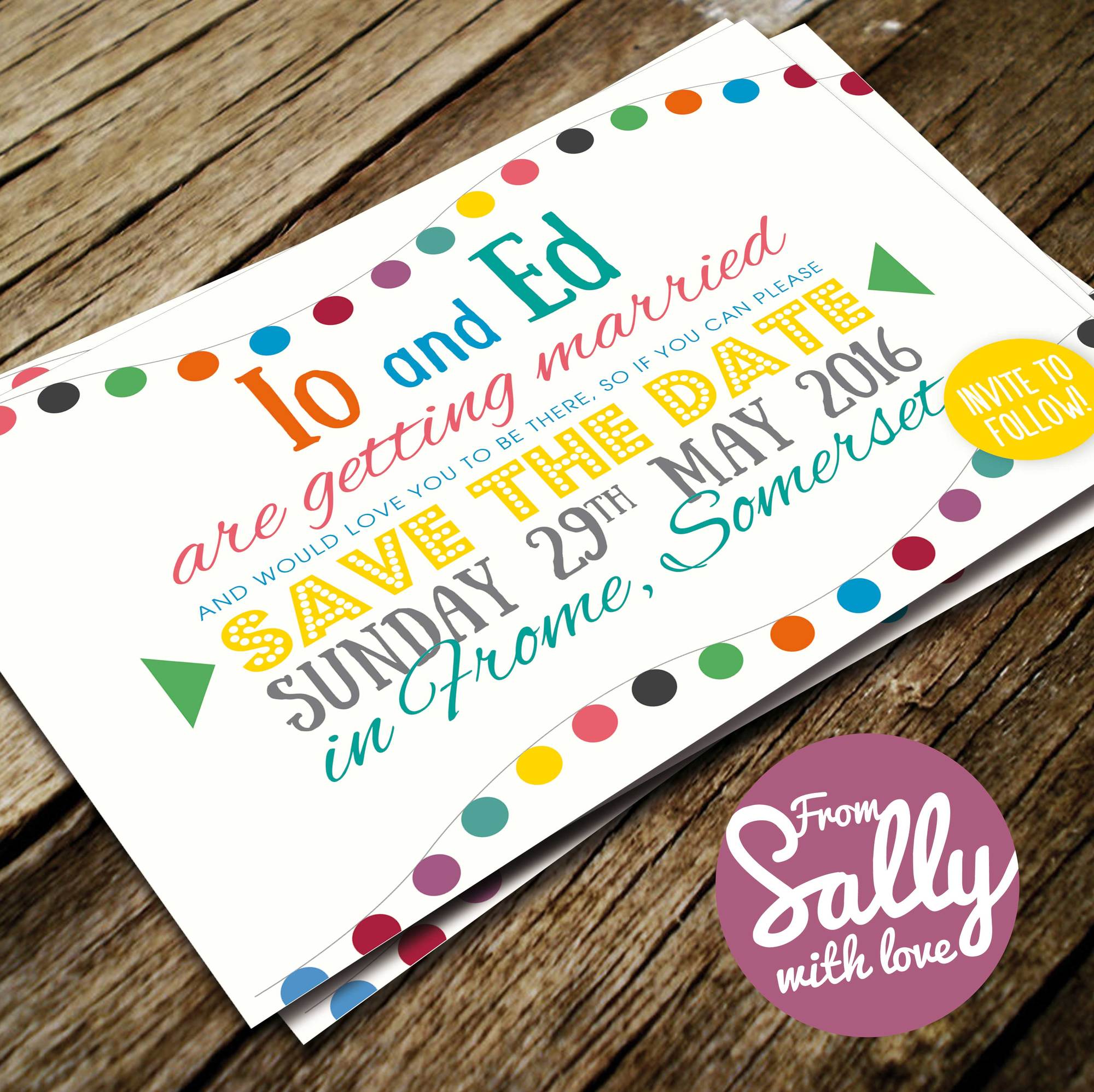 Beautiful and original wedding stationery, lovingly created by me, Sally, a designer based in North Somerset. Offering much more than just invitations, I can design save the dates right through to thank you cards – taking in speech betting cards and printed tea towels in between! All designs are bespoke and capture your colours, your style and your personality perfectly. A special occasion deserves truly special design.