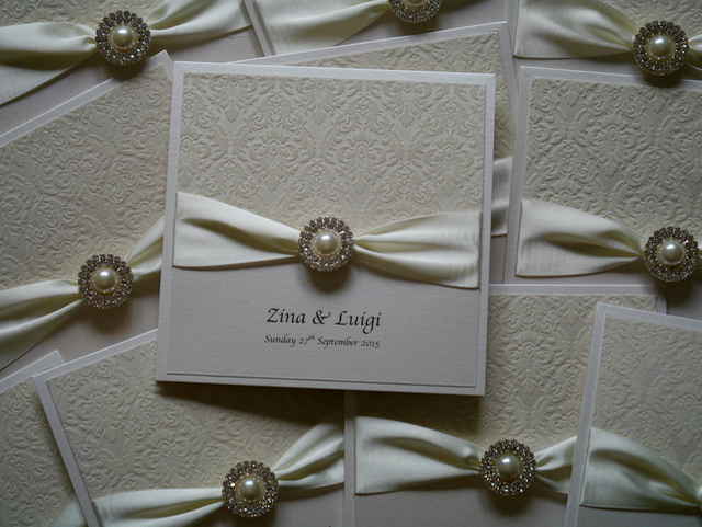 Peachy Impressions make luxury handmade wedding invitations and stationery. We offer a bespoke service or you can choose from our wide range of unique designs. Whatever your style Peachy Impressions can supply you with a beautiful handcrafted co-ordinated collection tailored to your style and budget. We understand that no two customers have the same need, taste or requirements, but all require top quality products with a no hassle first class service. From your save the date to your thank you cards we are here to inspire and advise you with your choices and ideas from start to finish. Our luxury designs include vintage lace, butterflies, winter snowflakes, pearl and diamante embellishments, buckles, beautiful floral and damask prints and luxurious double statin ribbons. Invitations are available in all styles including flat, classic fold and wallets. A co-ordinated range of on the day wedding stationery is available in all designs.