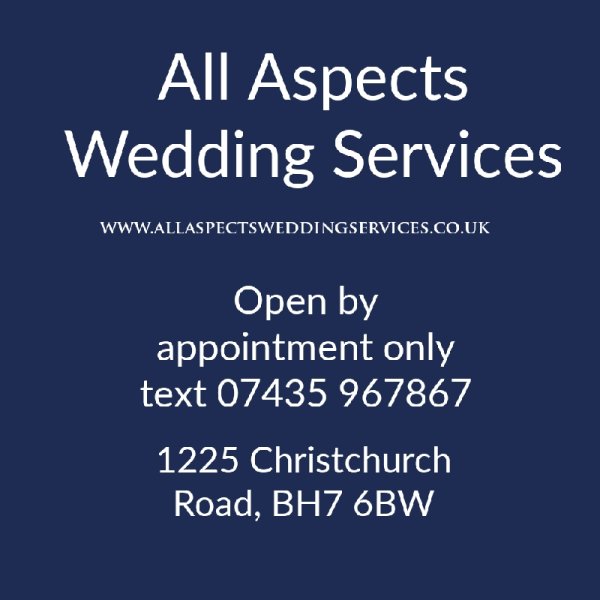 As an award winning one stop wedding shop, All Aspects Wedding Services offers Bridal & Bridesmaids gowns to purchase. Don't fret if your wedding is a short time away, we offer gowns that can be purchased off the rail. Lots of options - lots of choice. We also hire Men's Wear from top suppliers including Peter Posh & Cameron Ross. Within the Cameron Ross link on our web pages there is a dressing room facility for the guys to enable them to picture what they wear and how the wedding colors will come together for them. Amongst our bridesmaids we have chosen the fantastic DESSY, RICHARD DESIGNS & JACQUELINE LOUISE MULTIWAYS, all are available in lots of colours. Prices start at £100 for the classic jersey multiways dress. We can even get you to the CHURCH ON TIME! ..with our fantastic collection of bridal cars. All individually owned & wonderfully maintained. Email through for a quote. Have a look at the web site for ideas of how we can help & be a part of your special day - our motto is because we care we get it right! We open by appointment ONLY as we like to be able to assist you with dressing & discuss how best we can build your dream. I look forward to meeting you Gill